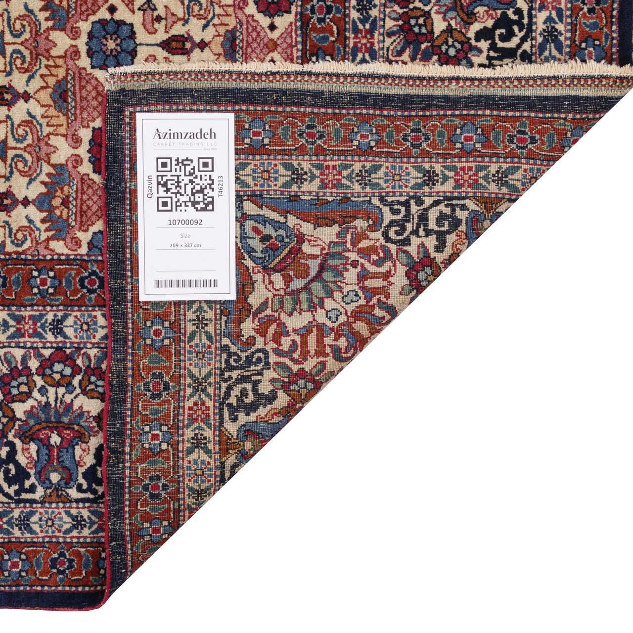سجادة يدوية عتيقة، تصميم كامل، صوف و سدى قطني، قزوين، 209 × 337 سم الكود 10700092