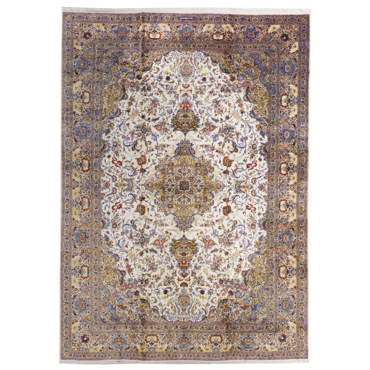 Antique Handwoven Carpet Corner Medallion Layout All Silk Kashan 300 × 415 cm Ref 11200115 Antique Handwoven Carpet