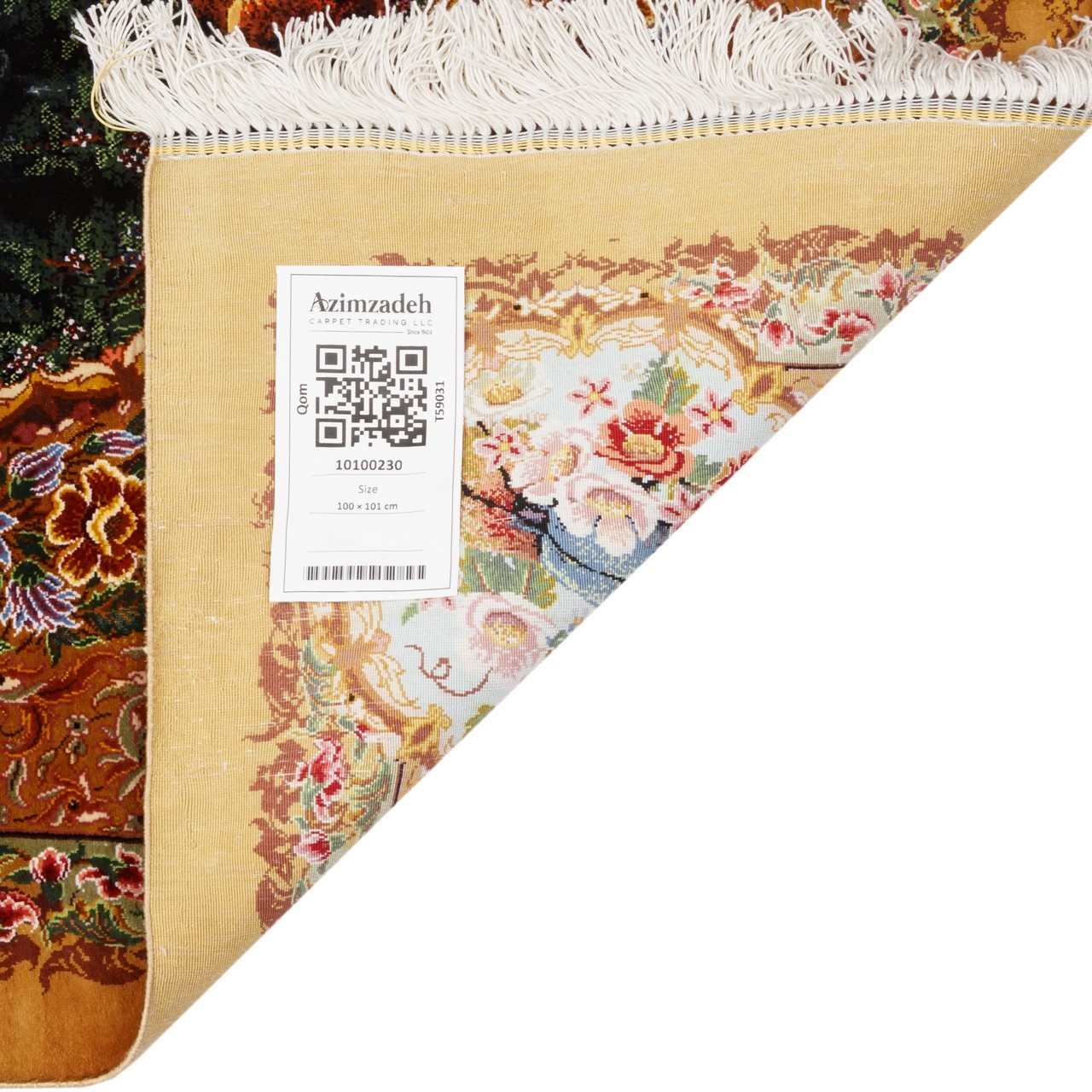 سجادة يدوية ، تصميم كامل، حرير كامل، قم، 100 × 101 سم الكود 10100230