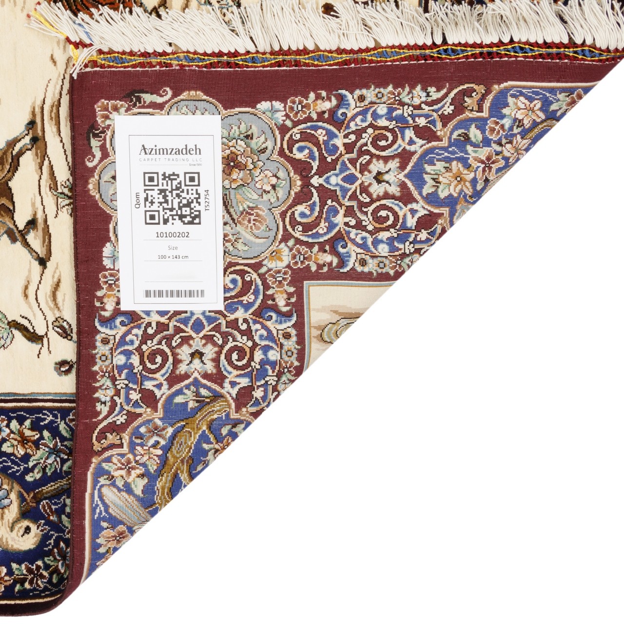 سجادة يدوية ، تصميم كامل، حرير كامل، قم، 100 × 143 سم الكود 10100202