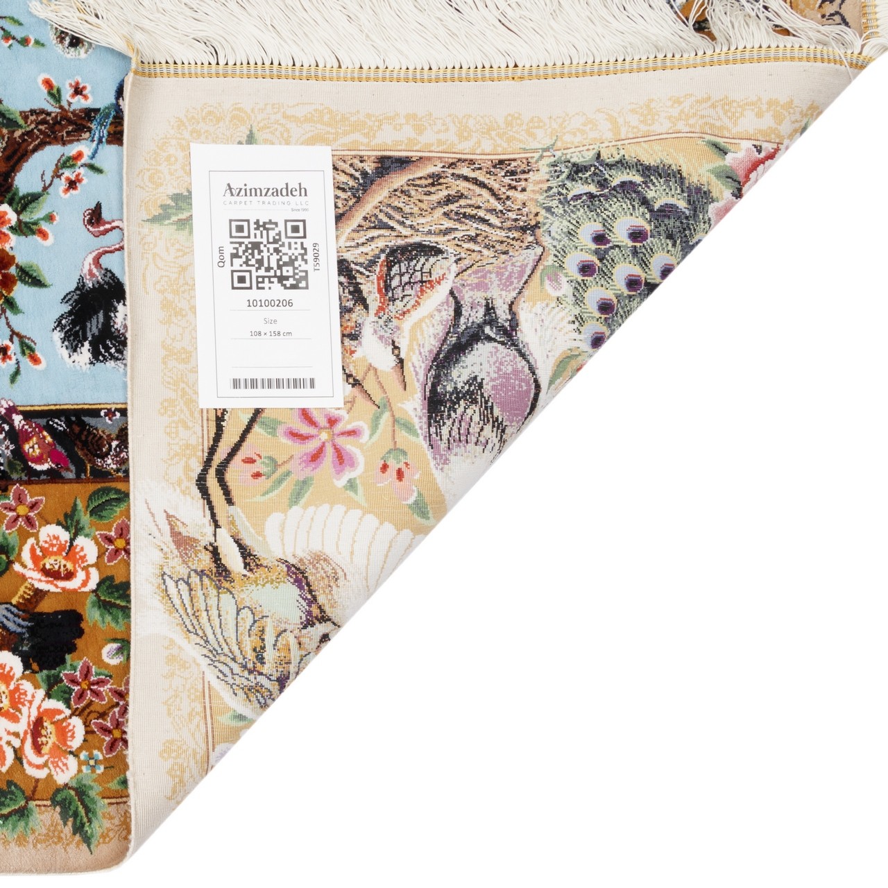 سجادة يدوية ، تصميم كامل، حرير كامل، قم، 108 × 158 سم الكود 10100206