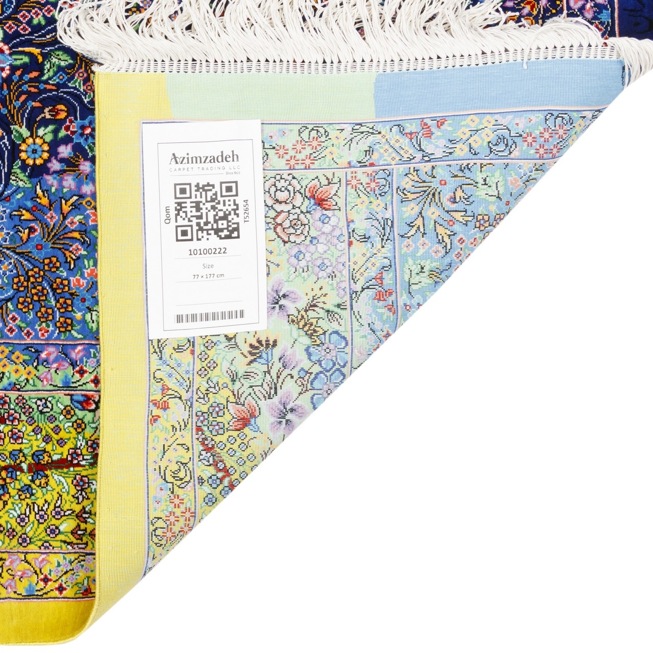 سجادة يدوية ، تصميم كامل، حرير كامل، قم، 77 × 177 سم الكود 10100222