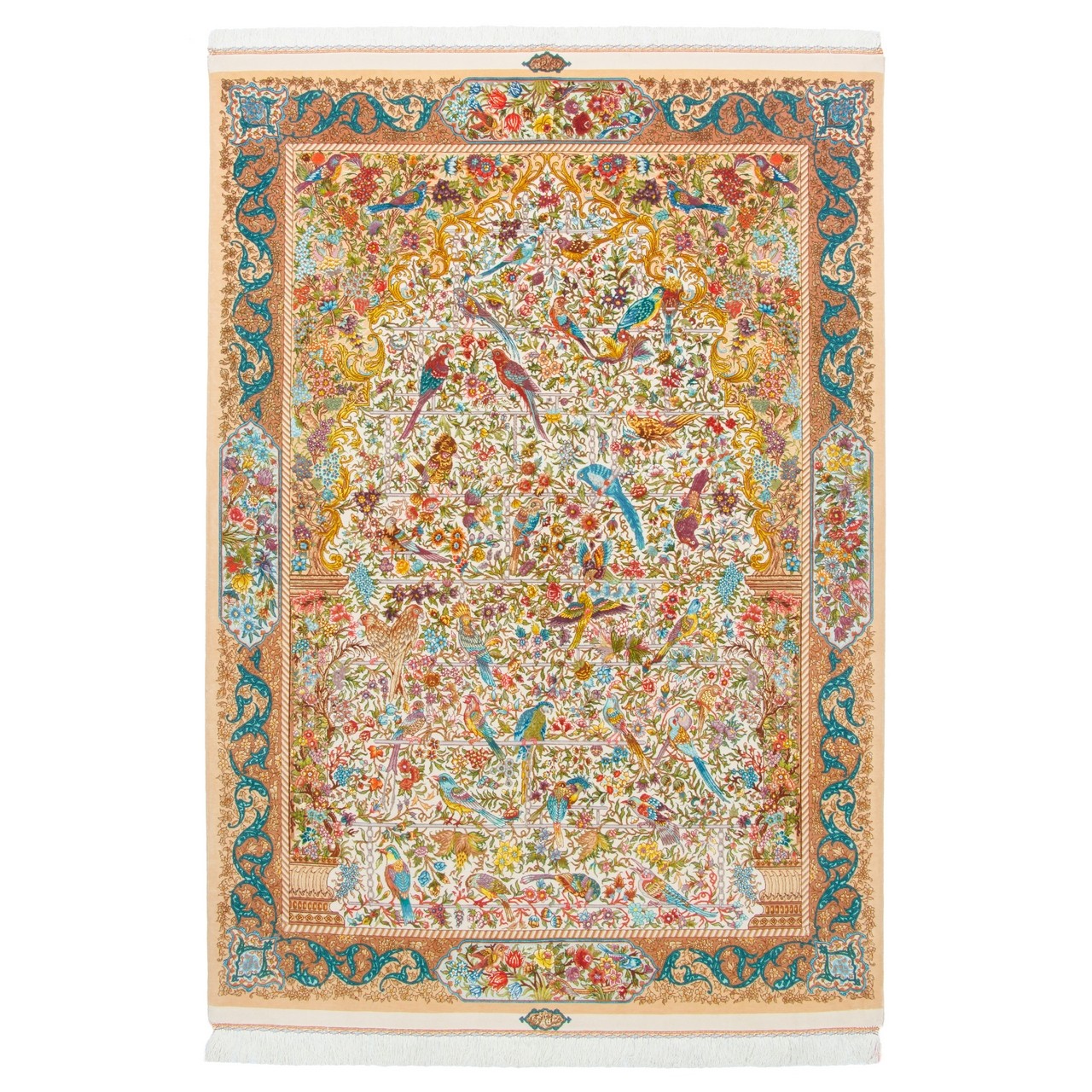 سجادة يدوية، تصميم كامل، حرير و سدى حريري، تبريز، 150 × 220 سم الكود 10300564