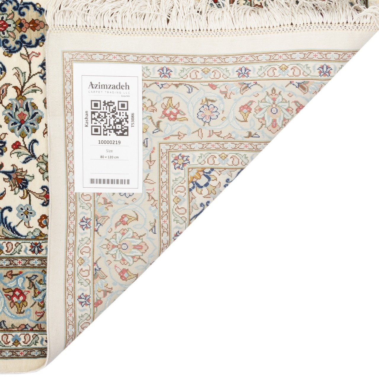 سجادة يدوية ، تصميم زاوية وترنج، حرير كامل، كاشان، 80 × 120 سم الكود 10000219