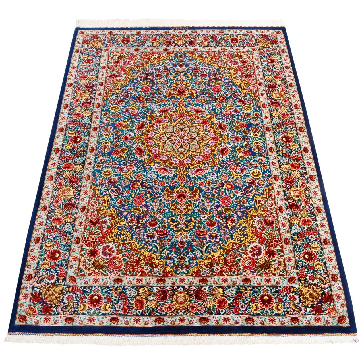 Handwoven Carpet Corner Medallion Layout All Silk Qom 100 × 147 cm Ref 10100157 Handwoven Carpet