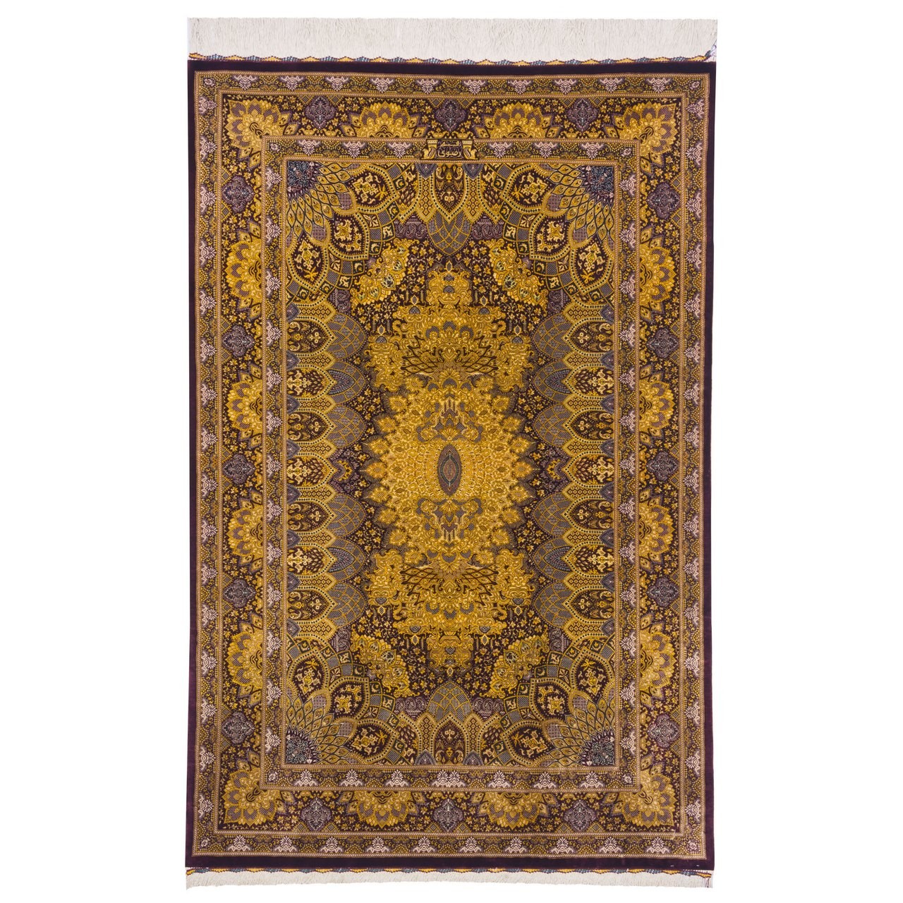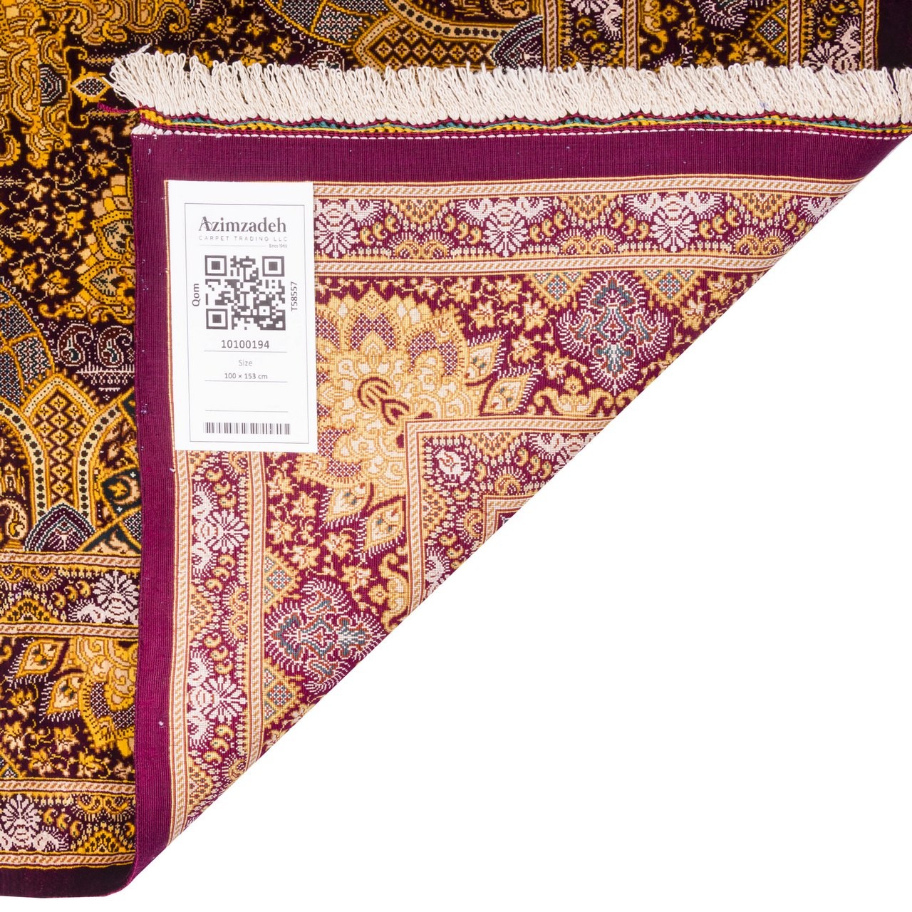 سجادة يدوية ، تصميم زاوية وترنج، حرير كامل، قم، 100 × 153 سم الكود 10100194