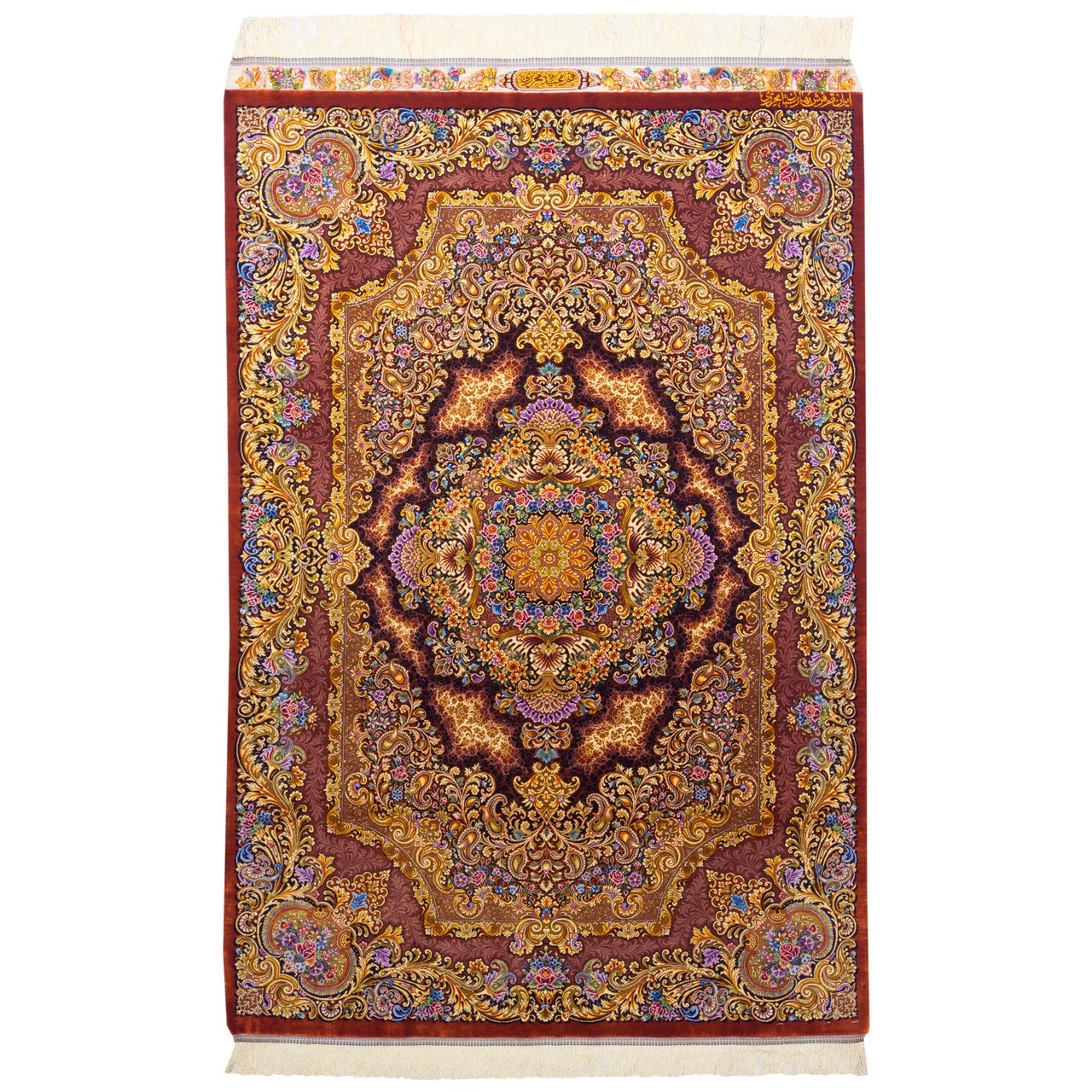 Handwoven Carpet Corner Medallion Layout All Silk Qom 102 × 150 cm Ref 10100185 Handwoven Carpet