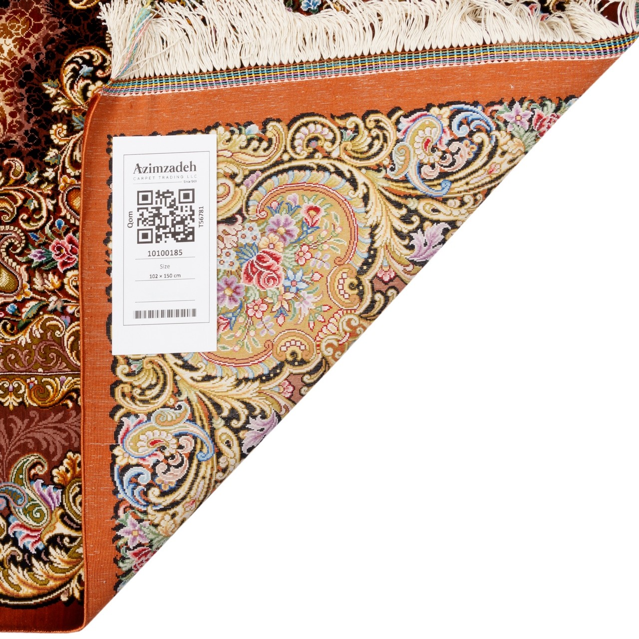 سجادة يدوية ، تصميم زاوية وترنج، حرير كامل، قم، 102 × 150 سم الكود 10100185
