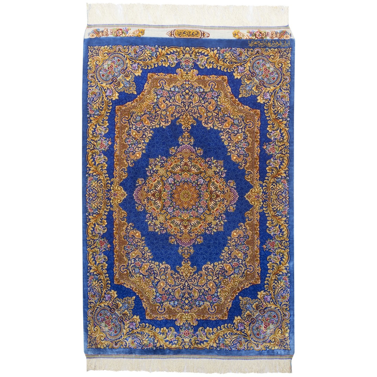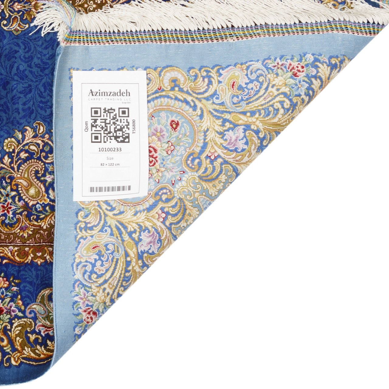 سجادة يدوية ، تصميم زاوية وترنج، حرير كامل، قم، 82 × 122 سم الكود 10100233