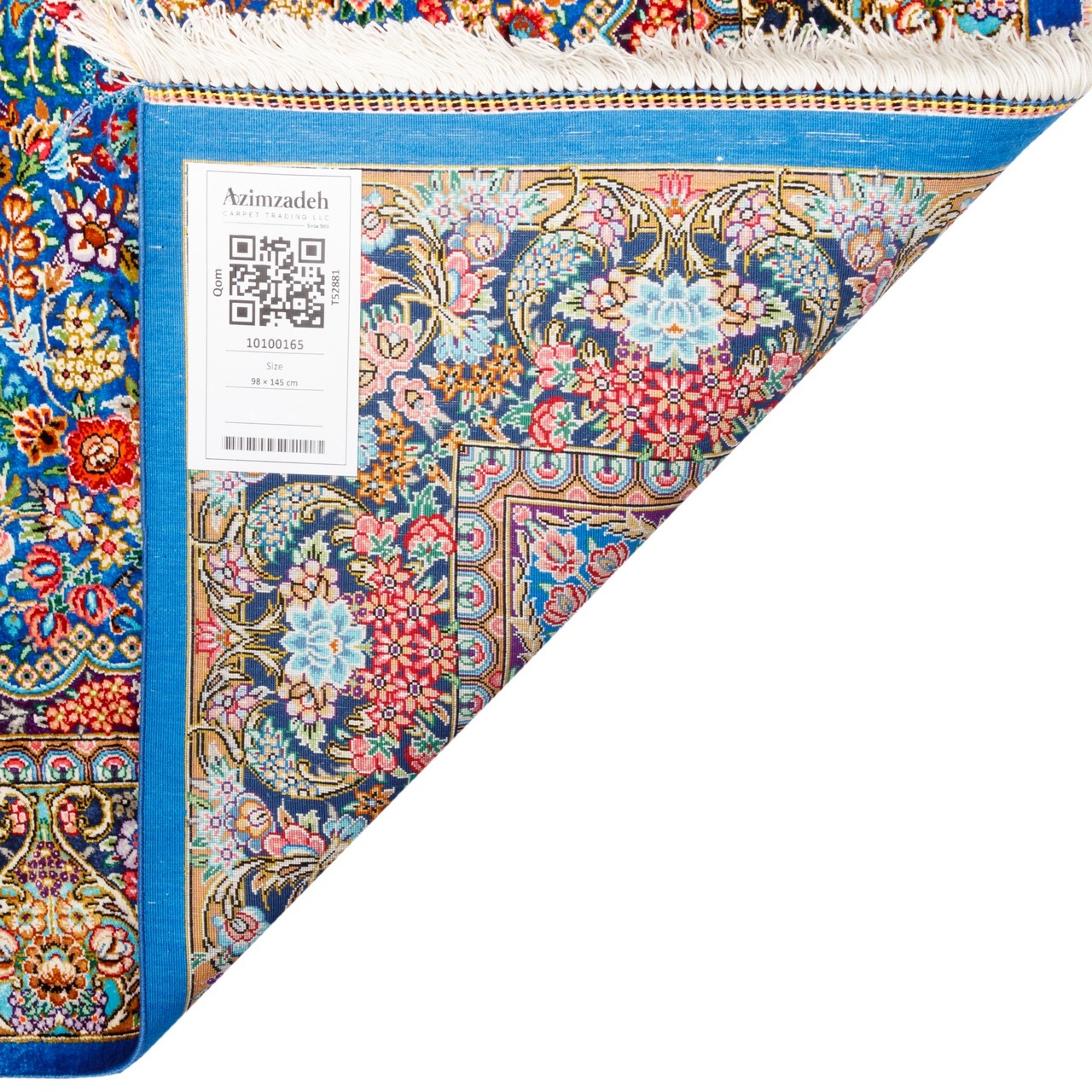 هذه السجادة اليدوية من قم، بمقاس 98 × 145 سم (3'3" × 4'9") ومساحة 1.43 م² (15.39 ft²)، هي نموذج فريد من فنون الحياكة حيث يجسّد كل عقد لطافةً وأصالةً وذوقاً إيرانياً رفيعاً. من إنتاج علامة «ميرمهدي»، تحمل تصميماً من مدالية مع أركان في امتزاج مع أرضية زرقاء وحاشية كحلية، لتخلق جواً حالماً وآسراً. اللون الأزرق أضفى هدوءاً ووقاراً على فضاء السجادة، فيما منح الكحلي العميق في الحاشية توازناً وعمقاً فريداً يجذب البصر إلى الداخل. بكثافة نسج تقارب 10000 عُقَد/دسم²، تشهد هذه السجادة على أقصى درجات الدقة والرهافة وصبر الحرفي. نُسجت هذه السجادة بالكامل من الحرير، وهو خامة تمنحها بريقاً طبيعياً يجعل النسيج نابضاً بالحياة، صافياً وجذاباً. إنها سجادة حريرية نفيسة، جديرة بالبيوت التي تحتضن الفن في أعماقها.