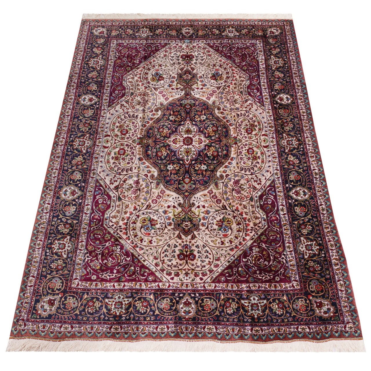 Handwoven Carpet Corner Medallion Layout All Silk Tabriz 140 × 206 cm Ref 10200050 Handwoven Carpet