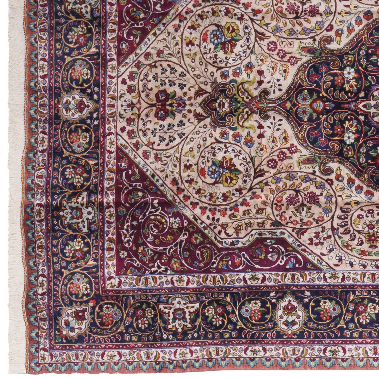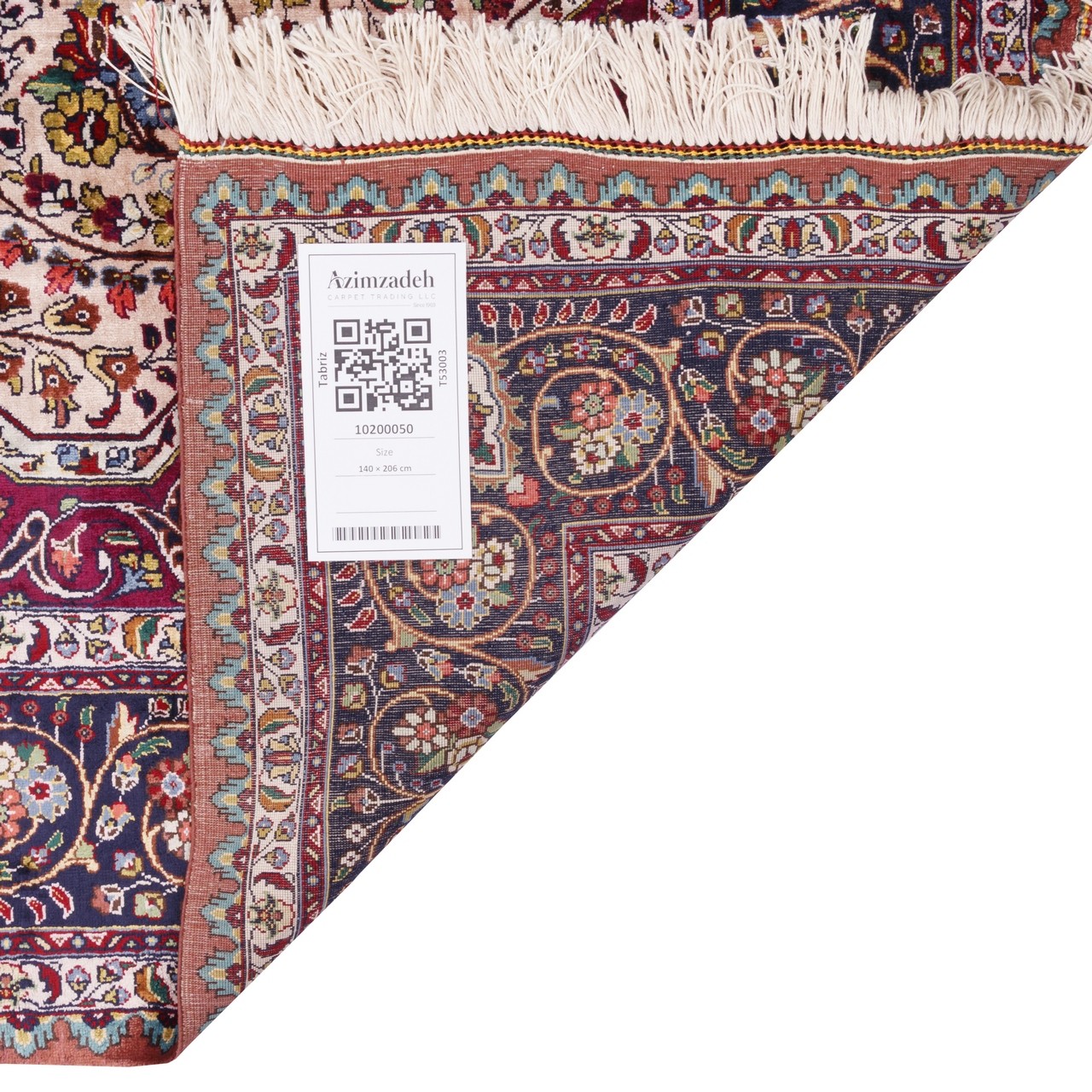 سجادة يدوية ، تصميم زاوية وترنج، حرير كامل، تبريز، 140 × 206 سم الكود 10200050