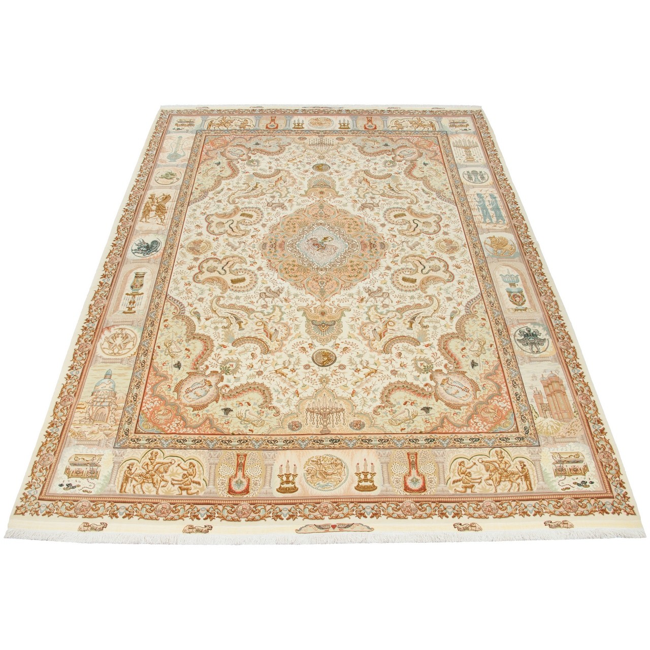 Handwoven Carpet, Corner Medallion Layout, Wool and Silk on Cotton Warp, Tabriz, 295 × 403 cm Ref 11100664