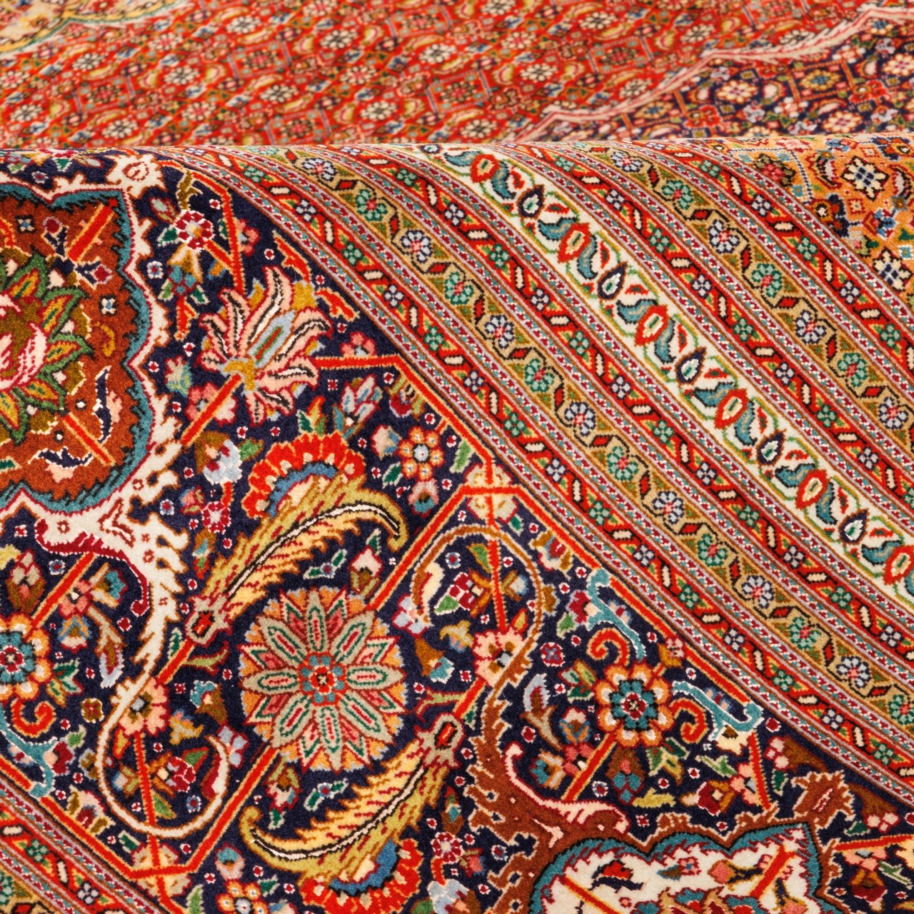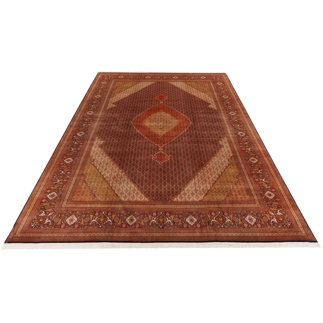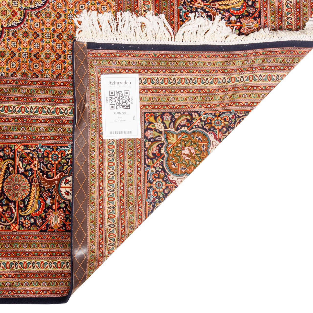 سجادة يدوية ، تصميم زاوية وترنج، حرير و سدى قطني، تبريز، 353 × 487 سم الكود 11700710