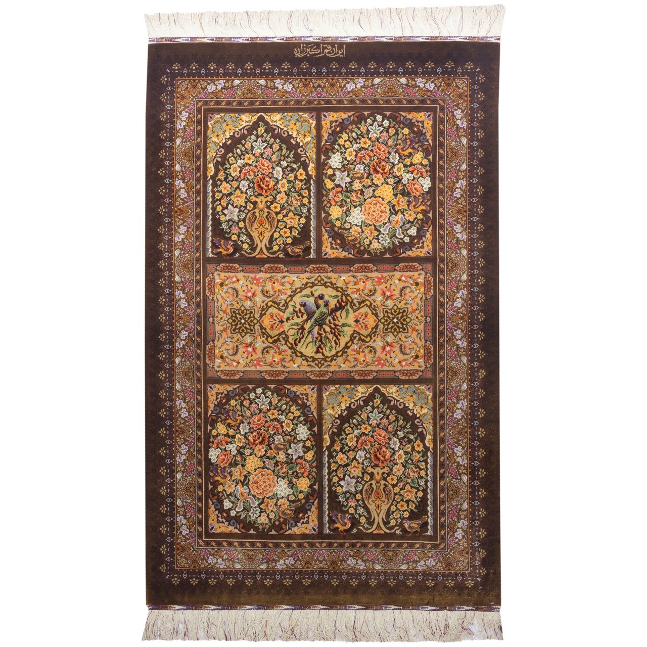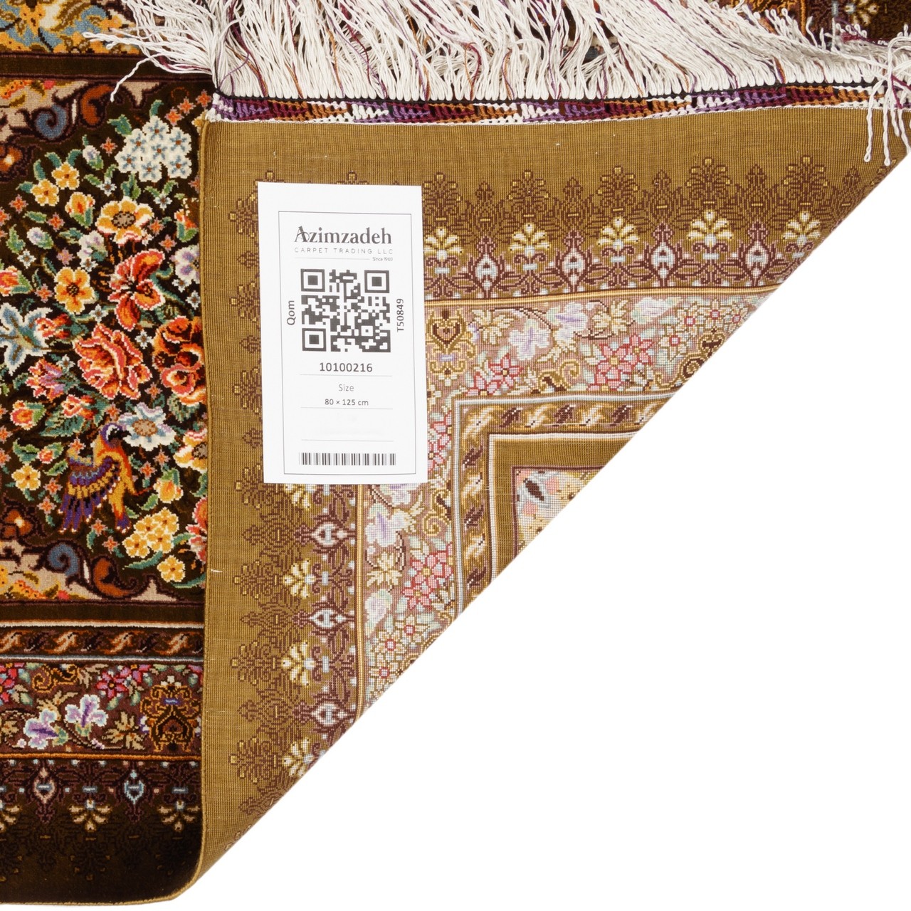 سجادة يدوية ، تصميم مؤطر، حرير كامل، قم، 80 × 125 سم الكود 10100216