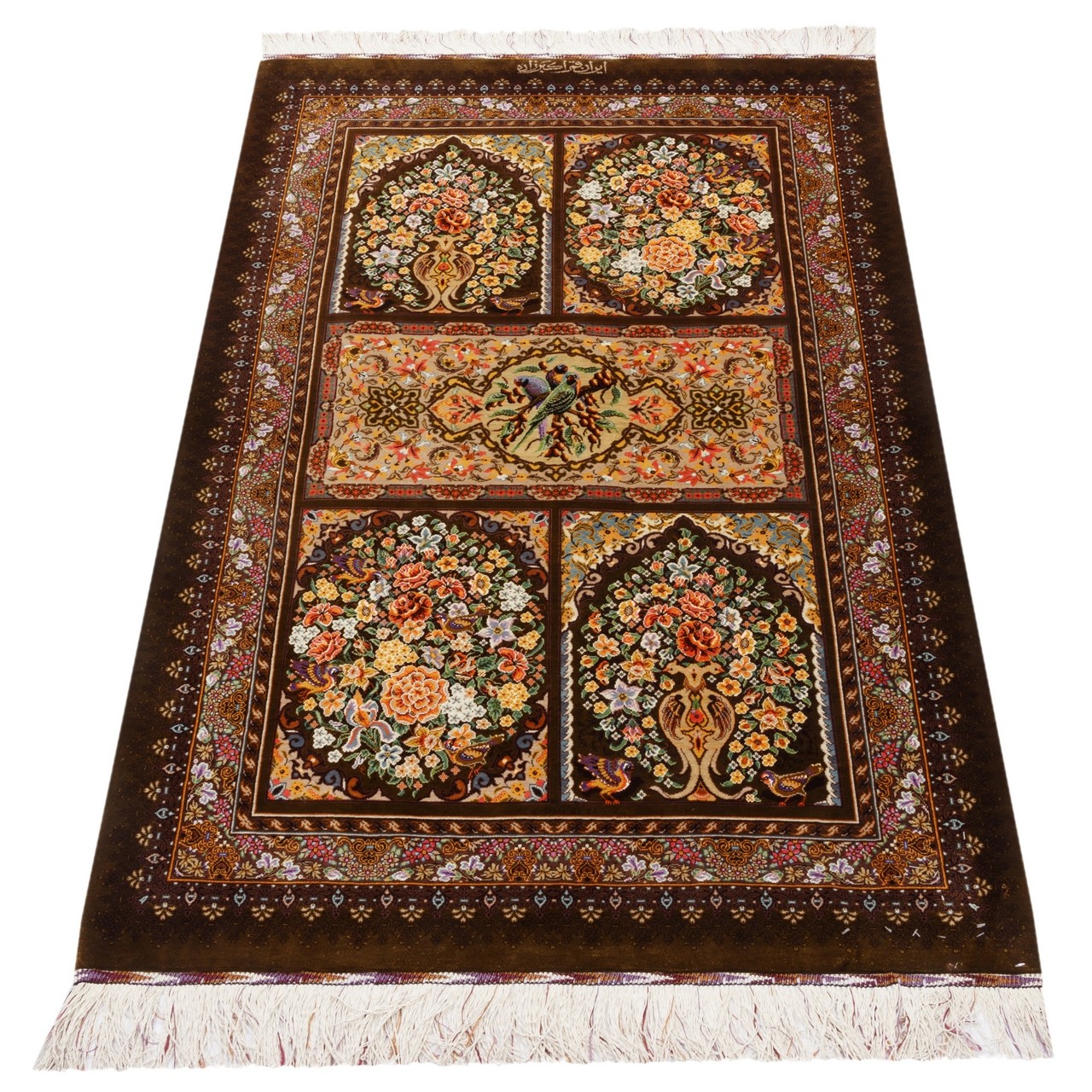 Handwoven Carpet Framed Layout All Silk Qom 80 × 125 cm Ref 10100216 Handwoven Carpet