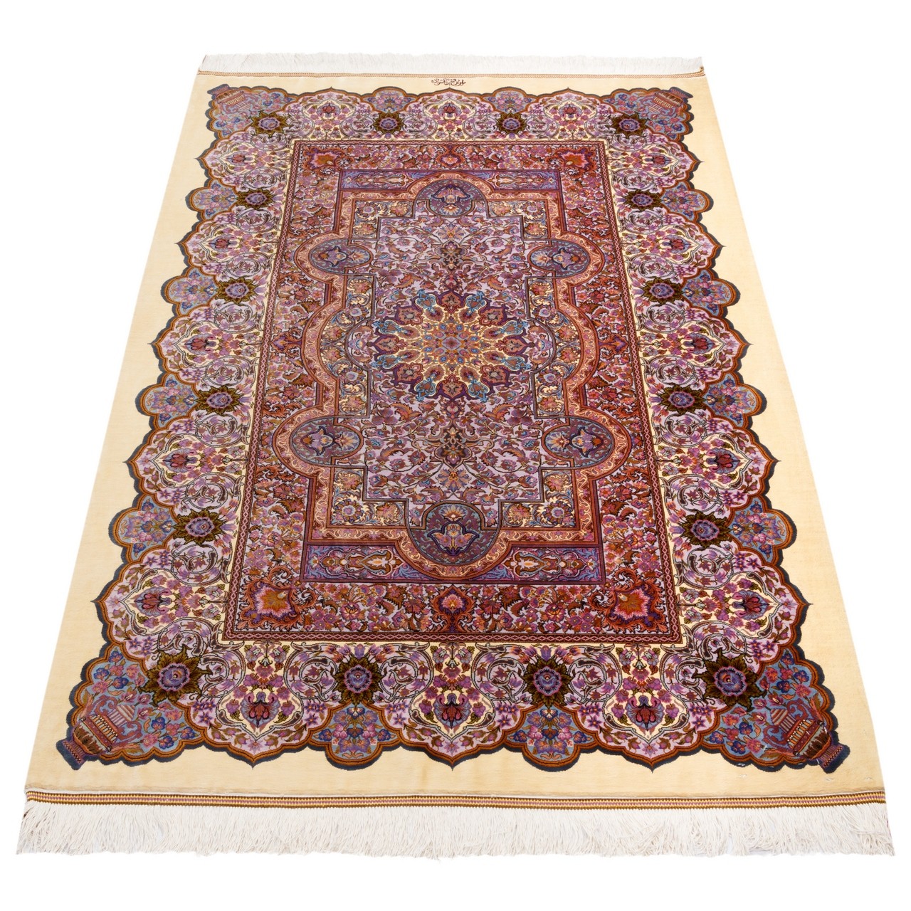 Handwoven Carpet Medallion Layout All Silk Qom 100 × 151 cm Ref 10100187 Handwoven Carpet