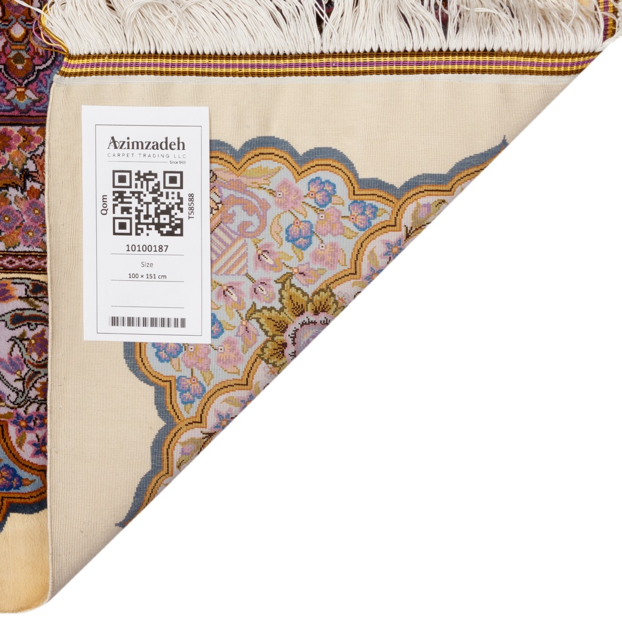 سجادة يدوية ، تصميم ترنج، حرير كامل، قم، 100 × 151 سم الكود 10100187
