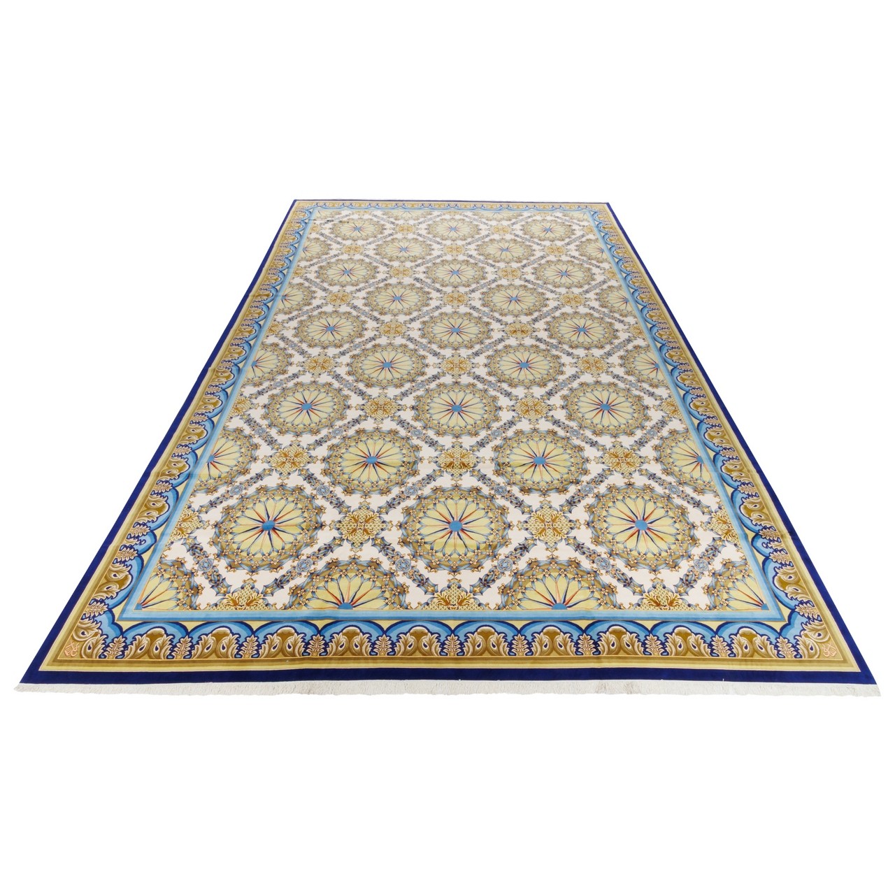 Handwoven Carpet Striped Layout Wool on Silk Warp Tabriz 450 × 700 cm Ref 13100751 Handwoven Carpet Striped Layout Wool on Silk Warp