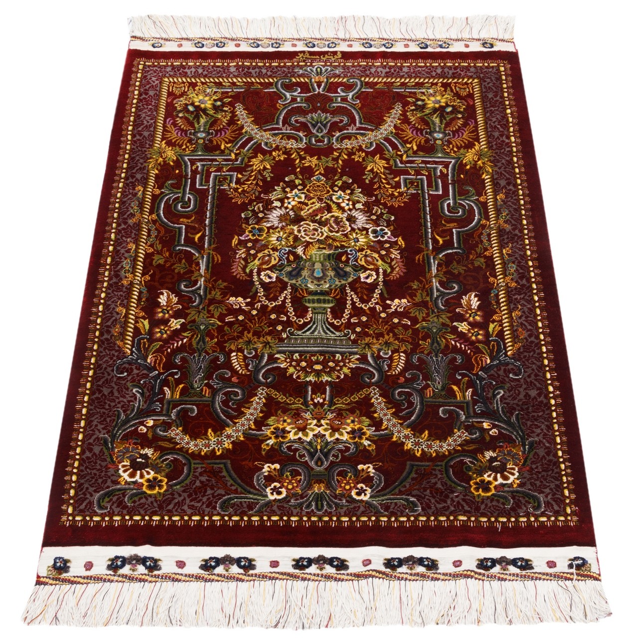 Handwoven Carpet Vase Layout All Silk Qom 60 × 90 cm Ref 10000263 Handwoven Carpet