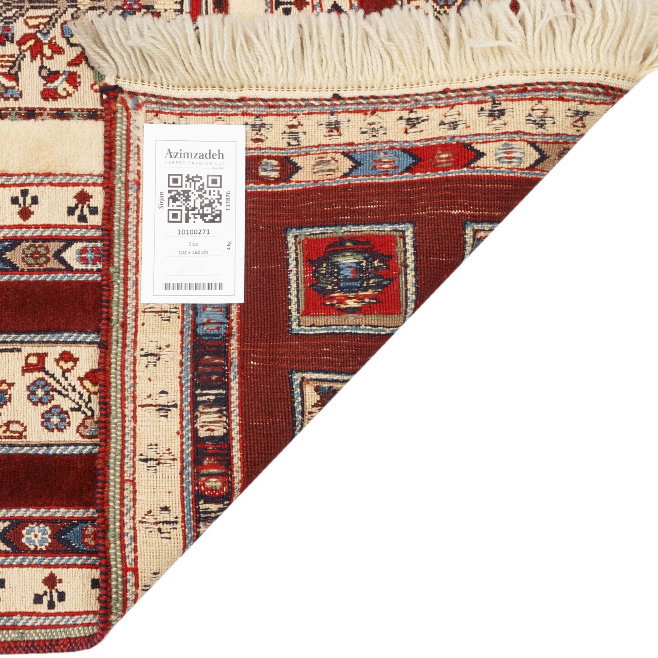 كليم يدوية ، تصميم مربعي، صوف كامل، سيرجان، 102 × 160 سم الكود 40100271