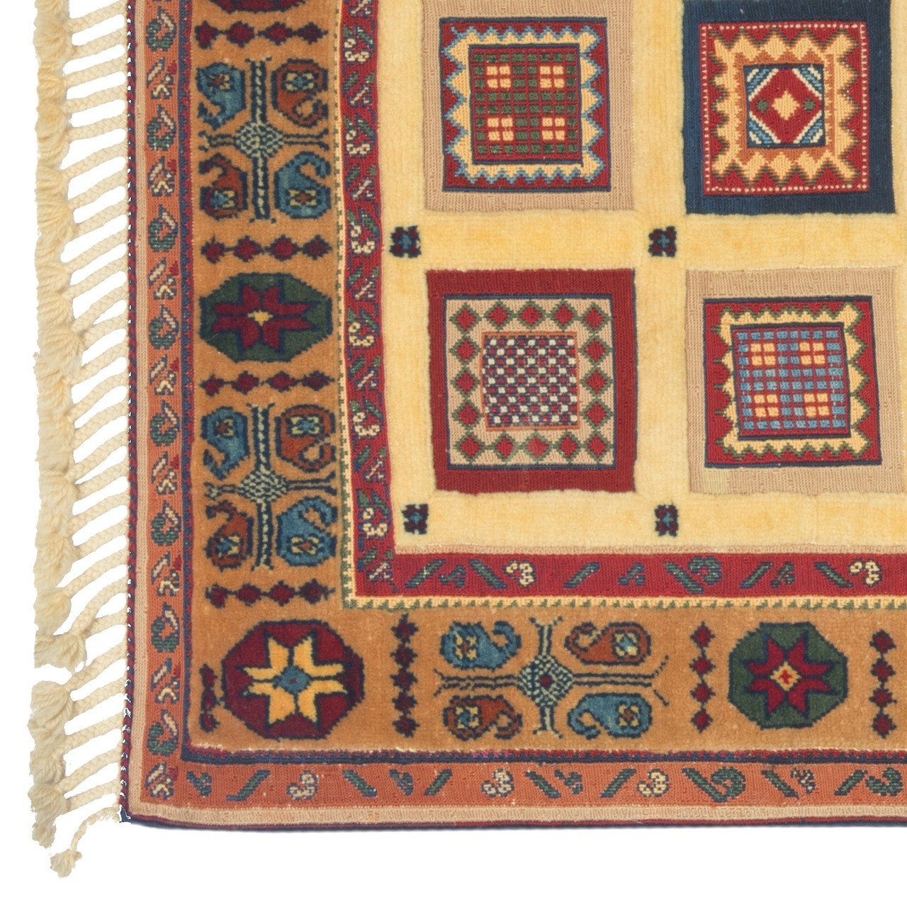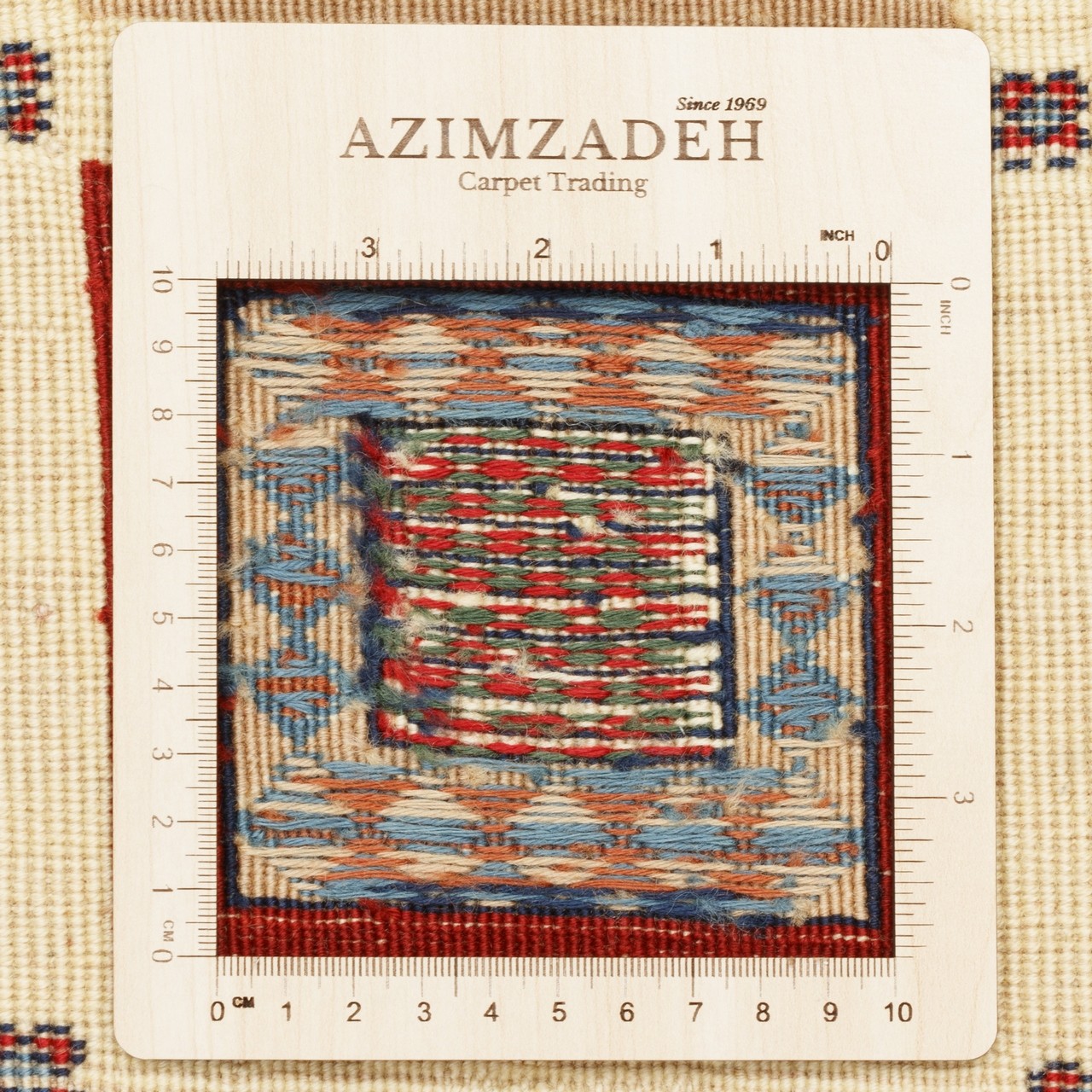 تأتي هذه الكِليم-السجادة اليدوية من سيرجان بتصميم خشتي، بقياس 80 × 132 سم (2'7" × 4'4") وبمساحة 1.06 م² (11.41 قدم²). وهي قطعة من الصوف بالكامل، بكثافة نسج تقارب 3,200 عُقَد/دسم²، منسوجة بصوف طبيعي يمنحها دفئاً ومتانةً وتوافقاً مع الطبيعة؛ فهي ليست عملية فحسب، بل تنقل أيضاً روح الحياة وصدق الريف. ينسّق تصميم الخشتي قوالب هندسية في مركز الكِليم، مستلهَماً من البُنى المعمارية التقليدية وذهن النسّاجين المحليين الخلّاق. كلُّ خِشتة عالمٌ مستقل يحمل علاماتٍ ورموزاً بسيطةً ولكن غنية بالدلالات. وتُبرز الأرضية الكريمية—رمز الأرض والسكون—مع الحاشية البنية التي تضفي صلابة بصرية، وبالاقتران مع الزخارف، توازناً طبيعياً ودافئاً. كِليمات سيرجان ليست مجرد مفروشات عملية، بل جزء من التراث الثقافي؛ إذ ينسج صنّاعها كلَّ سدى بخبرة، وكلَّ لحمة بحبٍّ لثقافتهم. وتلائم هذه القطعة المساحات البسيطة والبيئات ذات الروح الطبيعية—اختياراً أصيلاً لمن يبحث عن الجمال في البساطة والمعنى في الزخرفة.