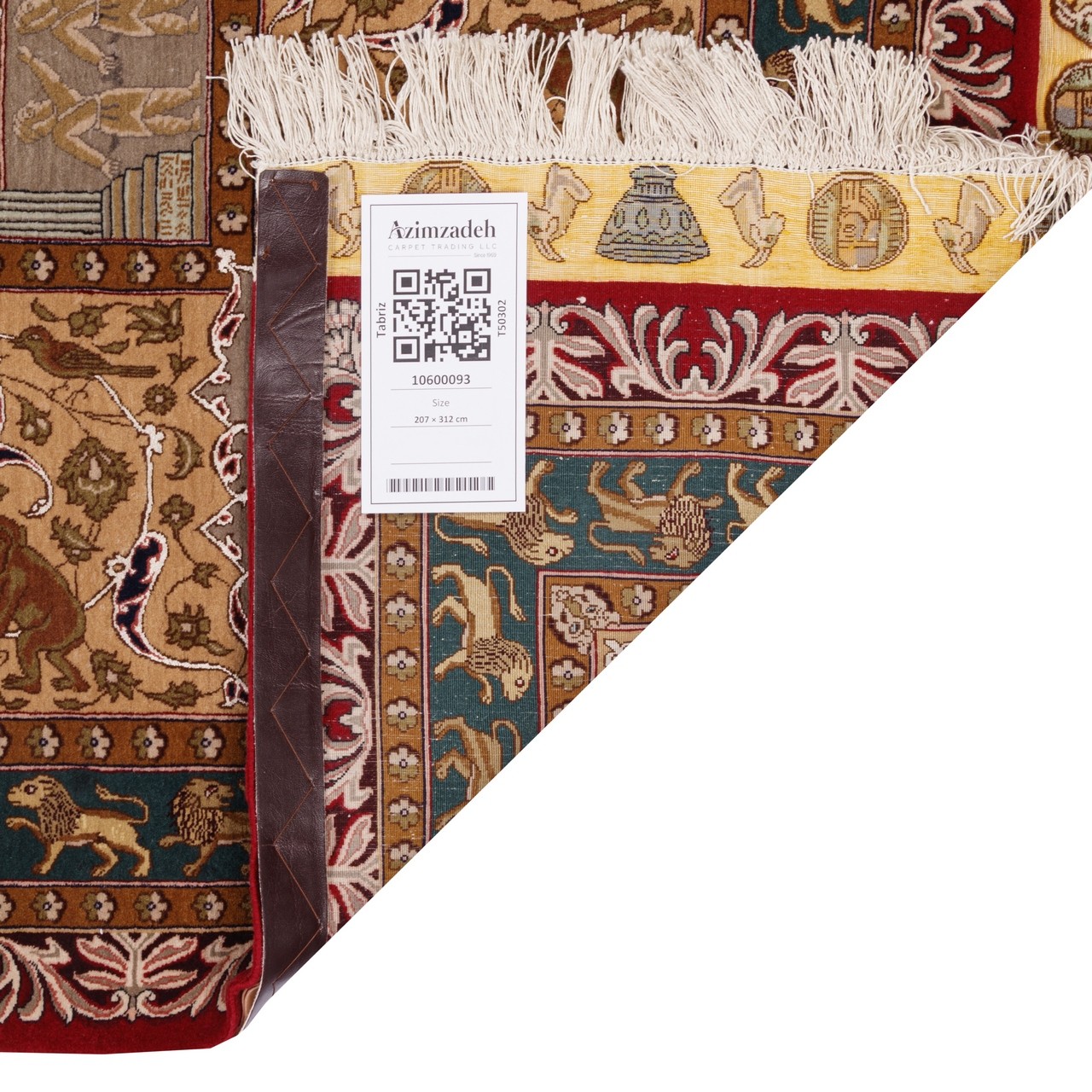 سجادة يدوية قديم، تصميم كامل، حرير و سدى حريري، تبريز، 207 × 312 سم الكود 10600093