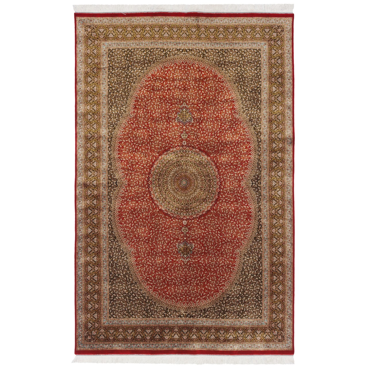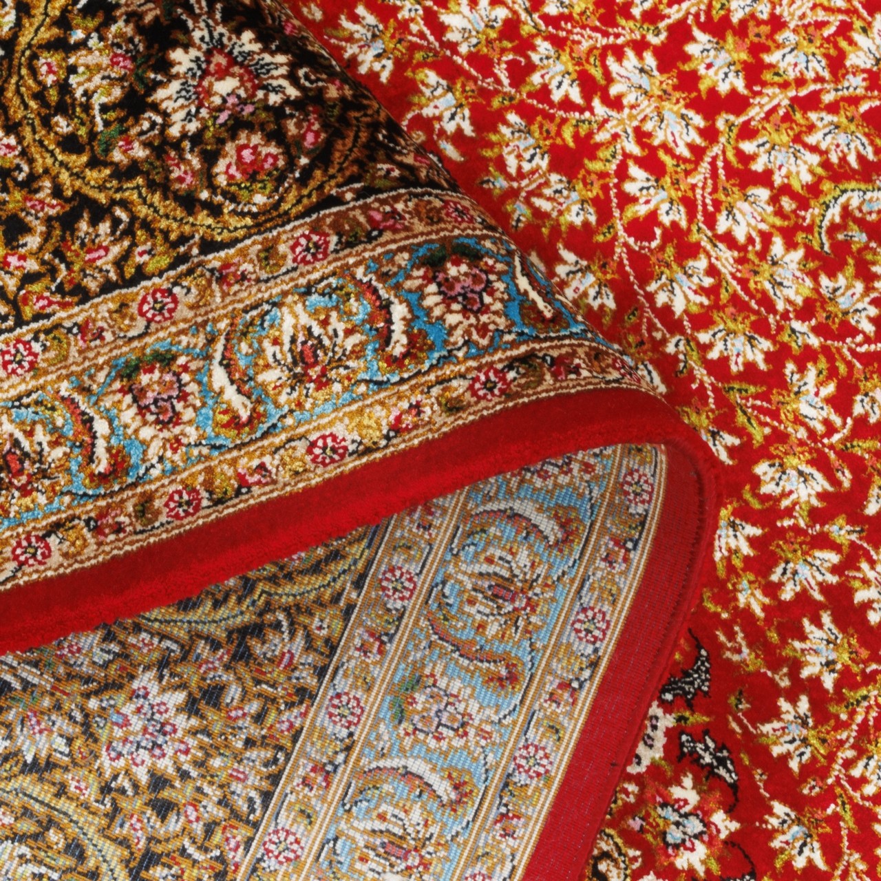 سجادة صناعية بنقشة زاوية وترنج مزخرف بالورود، أكريليك مع حرير بامبو، على الطراز الفارسي، رقم 200229