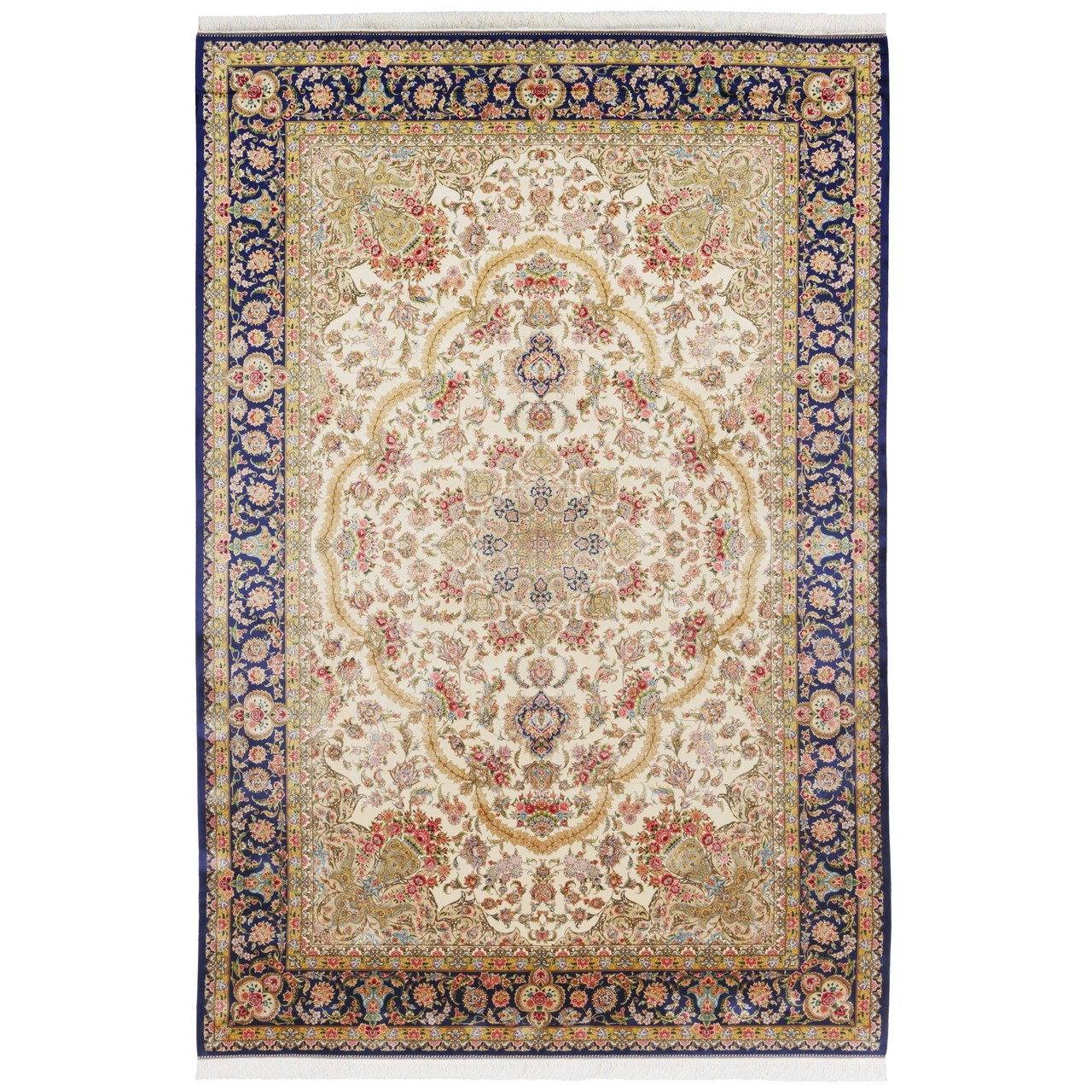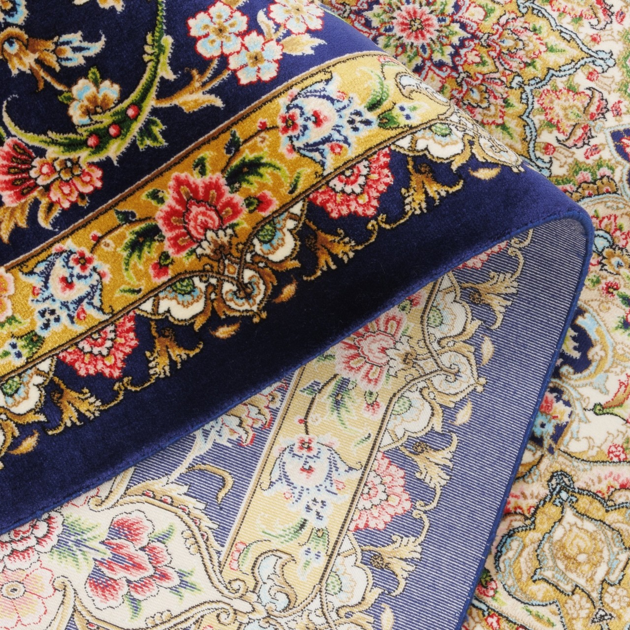 سجادة صناعية بنقشة زاوية وترنج مزخرف بالورود، حرير بامبو، على الطراز الفارسي، رقم 800263