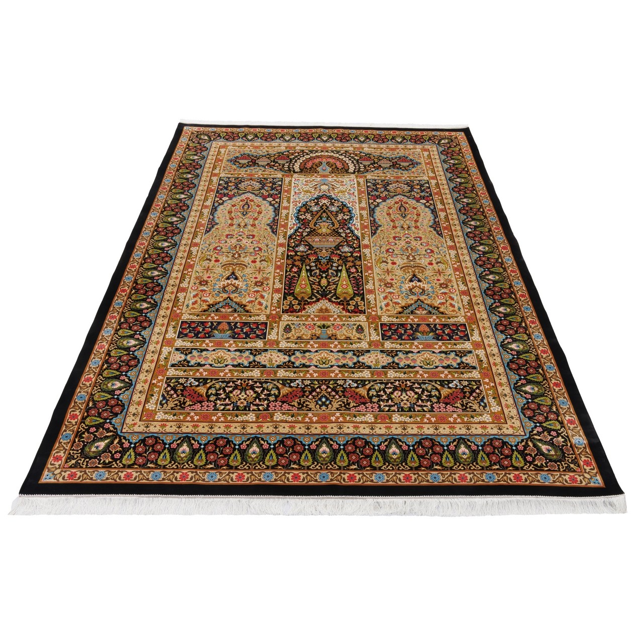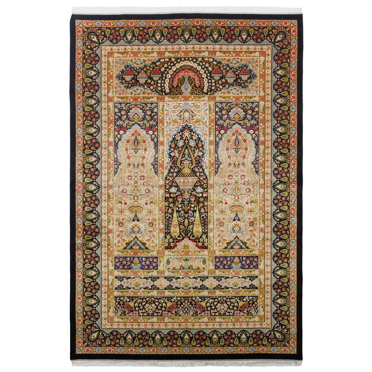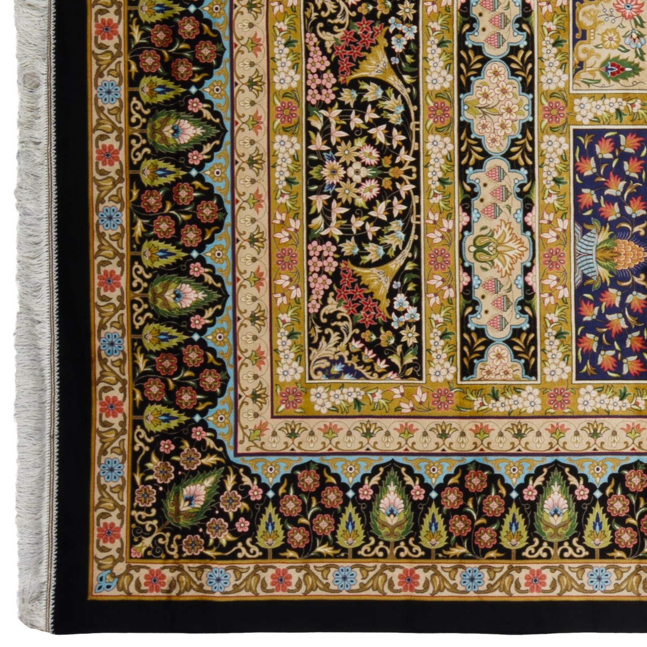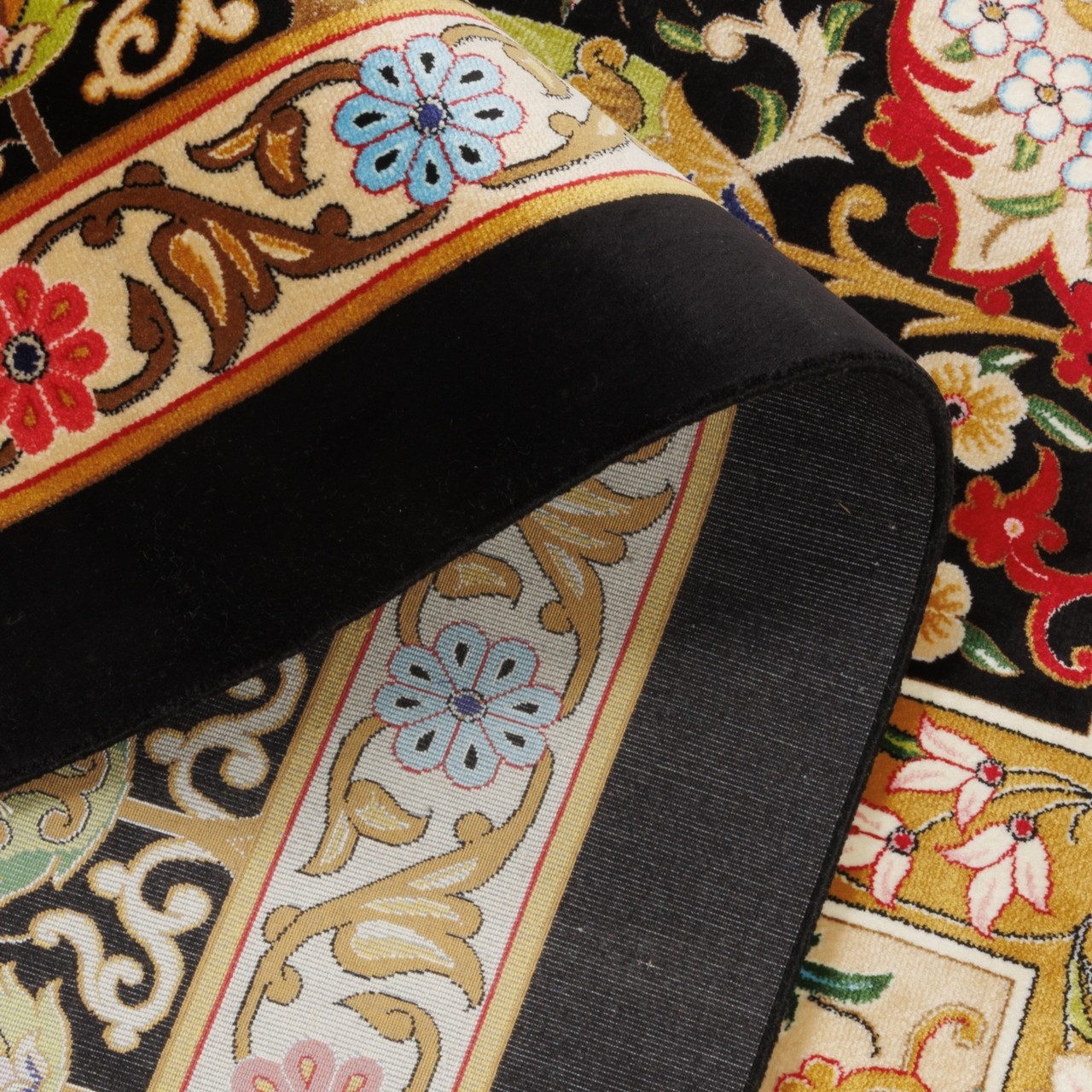 سجادة صناعية بنقشة مؤطر مزخرف بالورود، حرير بامبو، على الطراز الفارسي، رقم 800223