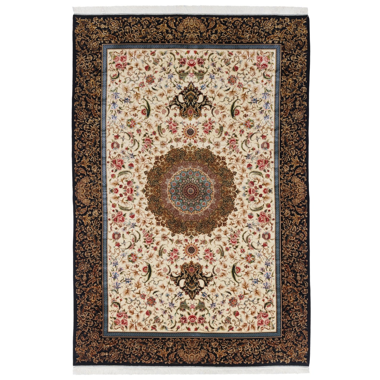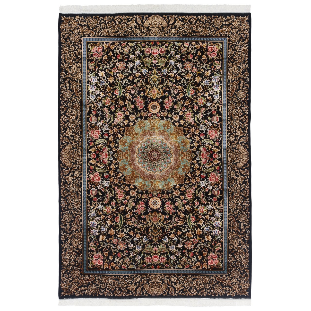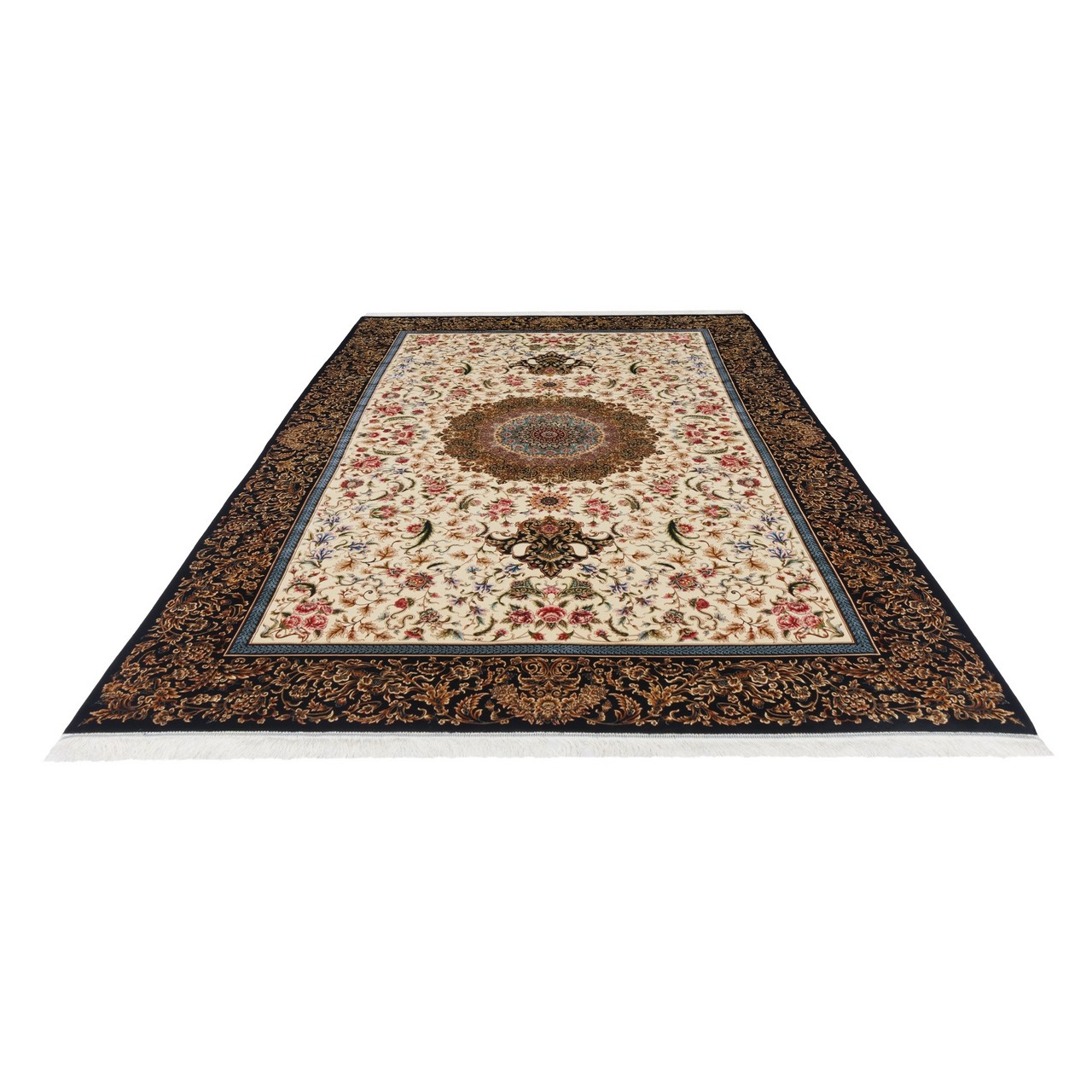 سجادة صناعية بنقشة ترنج مزخرف بالورود، أكريليك مع حرير بامبو، على الطراز الفارسي، رقم 200201