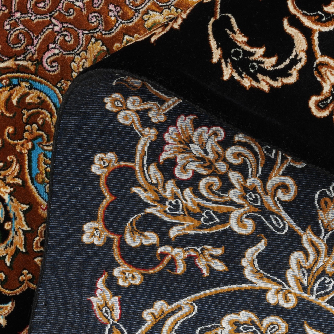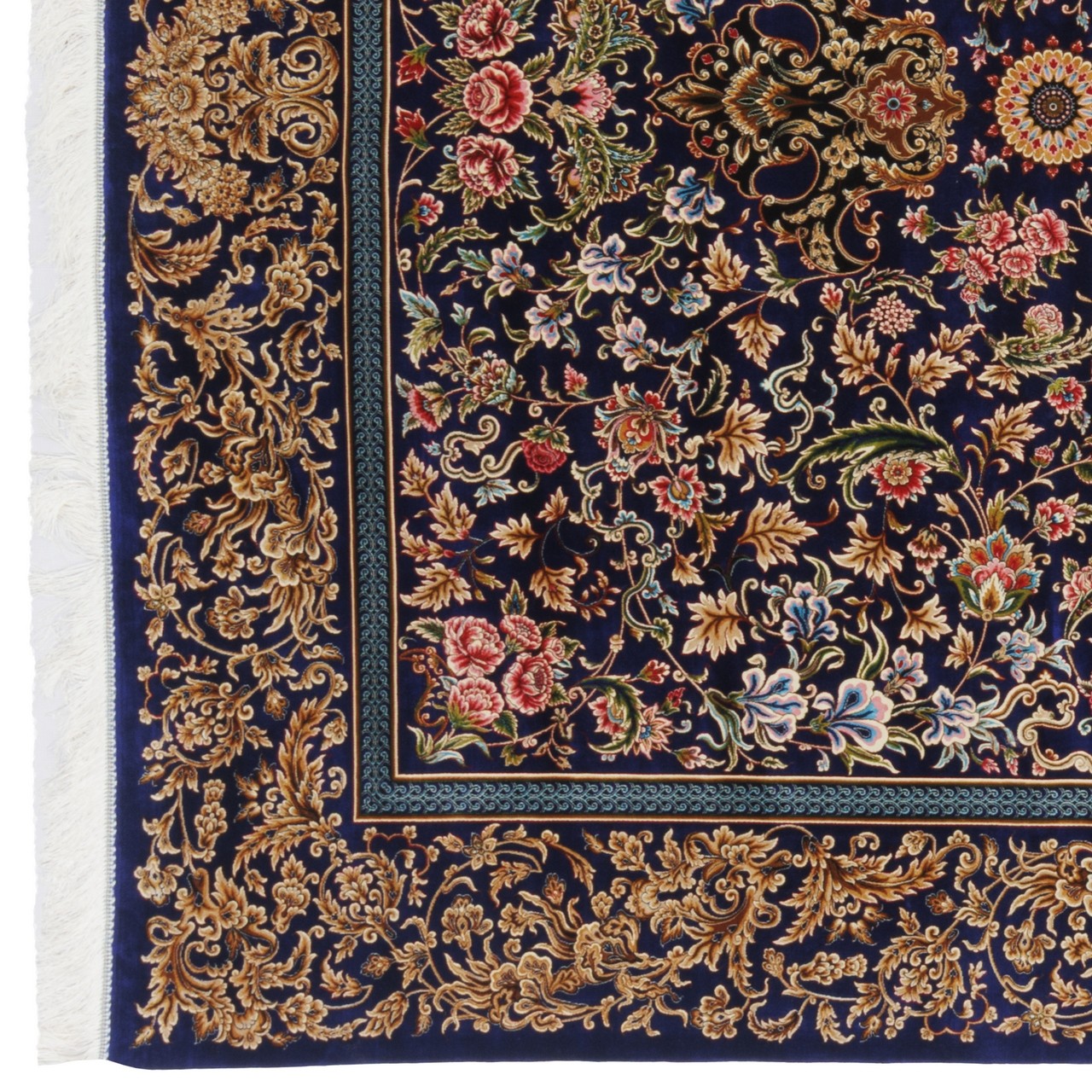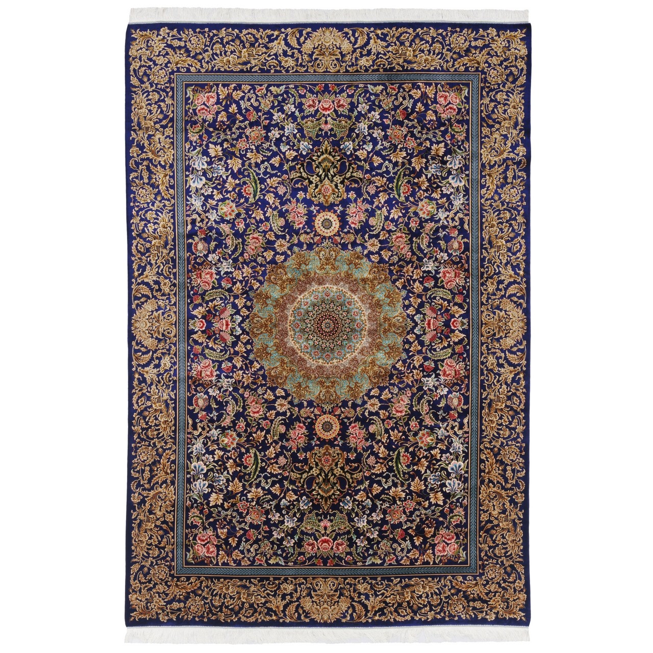 سجادة صناعية بنقشة ترنج مزخرف بالورود، أكريليك مع حرير بامبو، على الطراز الفارسي، رقم 200201