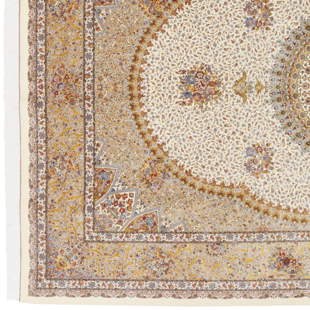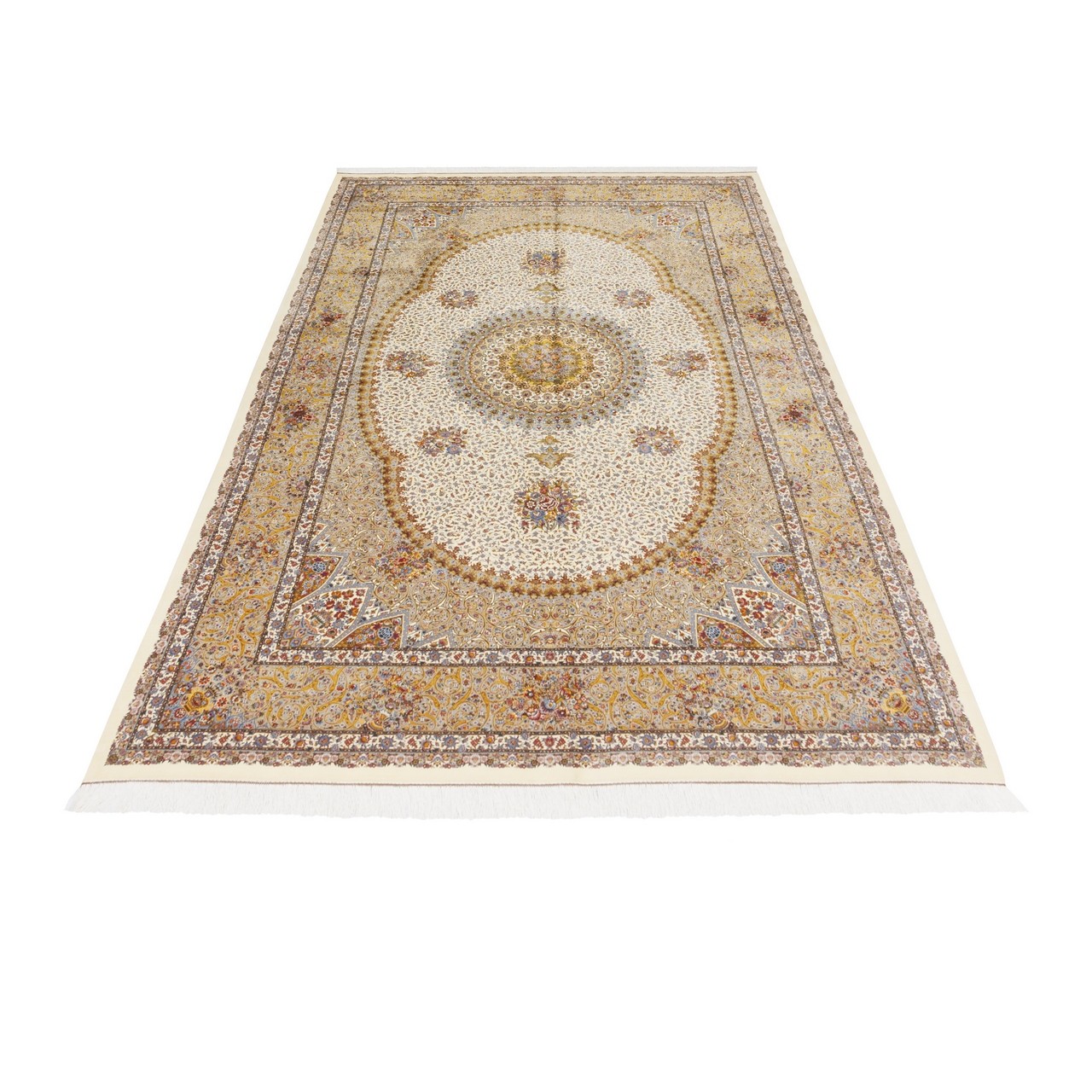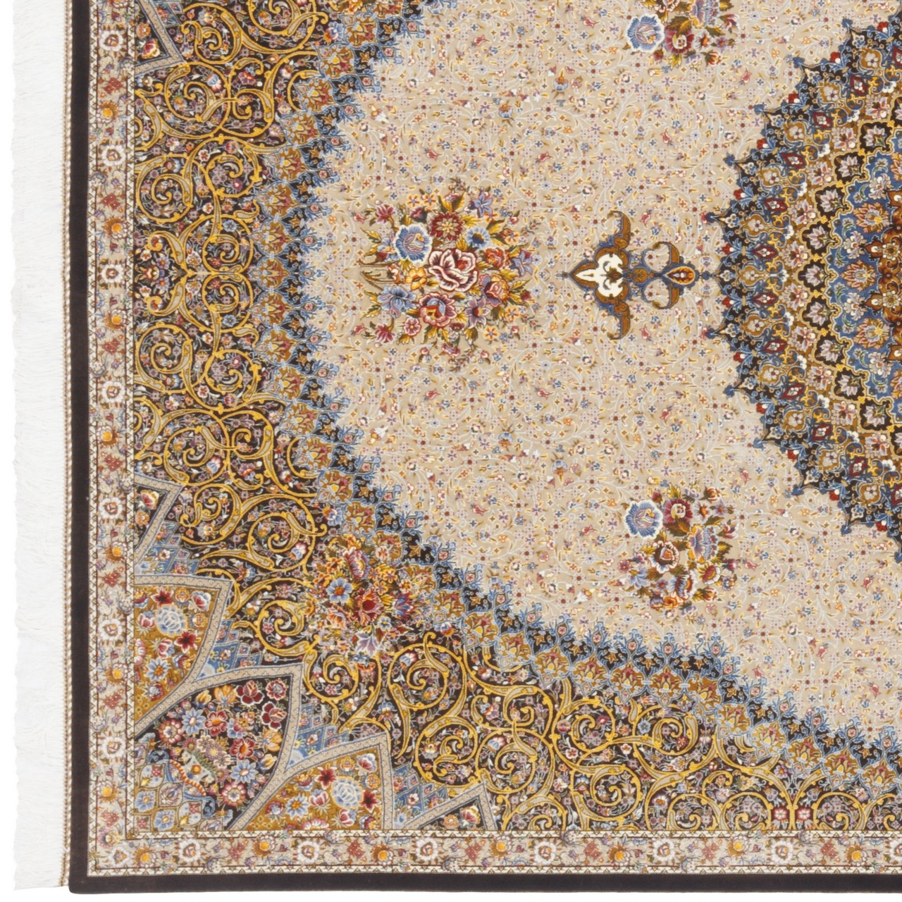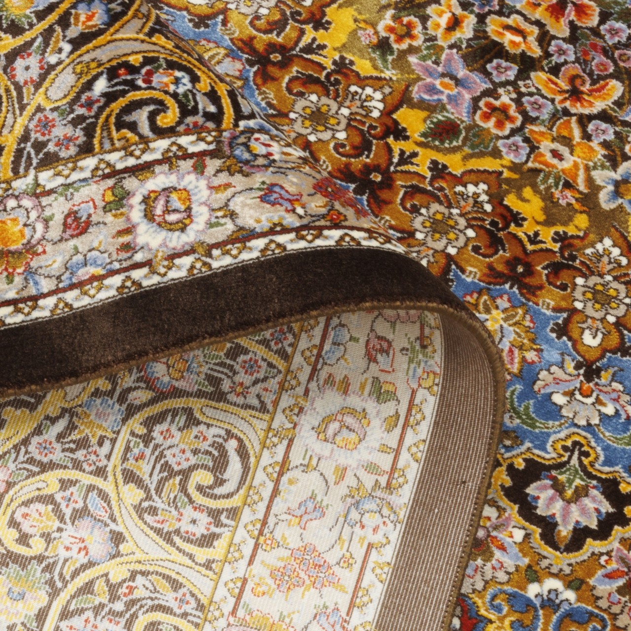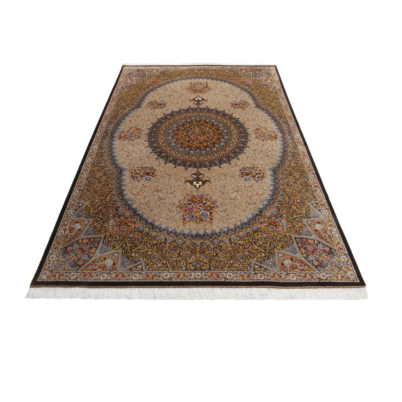 سجادة صناعية بنقشة ترنج مزخرف بالورود، حرير بامبو، على الطراز الفارسي، رقم 800286
