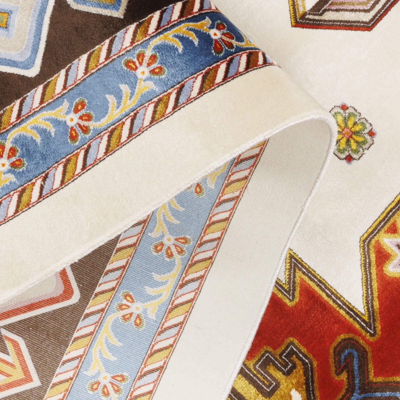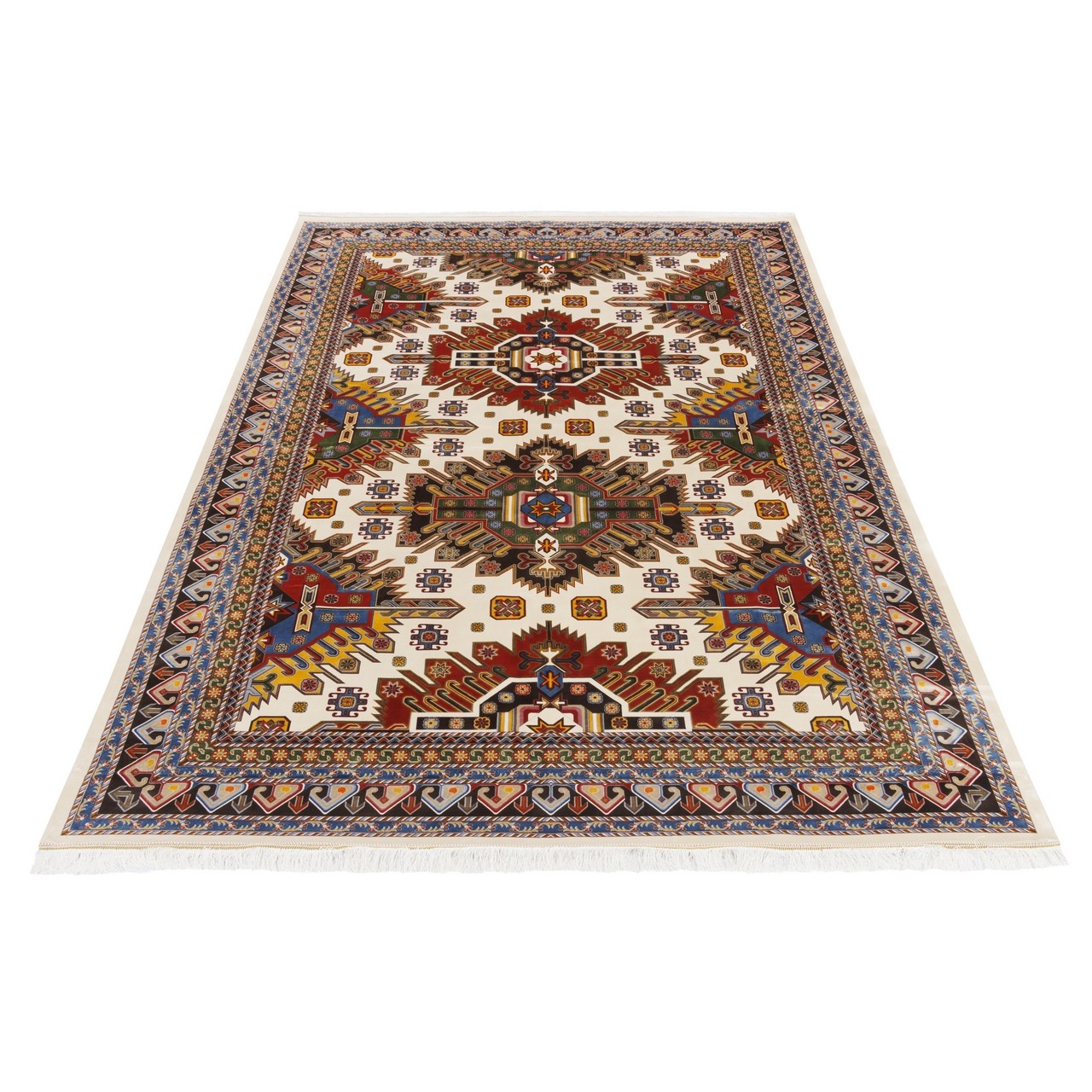 سجادة صناعية بنقشة كامل هندسي، حرير بامبو، على الطراز الفارسي، رقم 800246