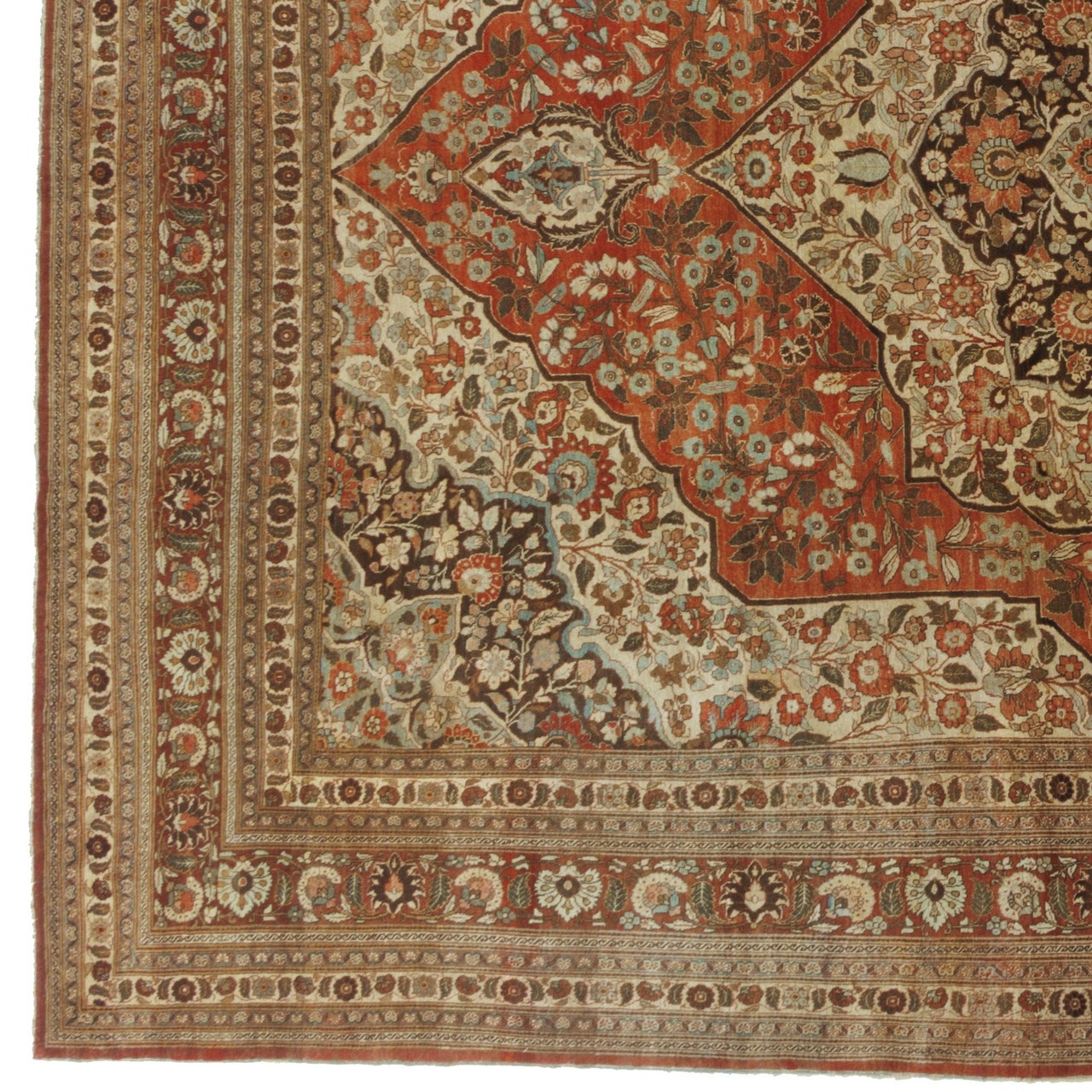 Antique Handwoven Carpet, Corner Medallion Layout, Wool on Cotton Warp, Tabriz, 335 × 462 cm Ref 11500129