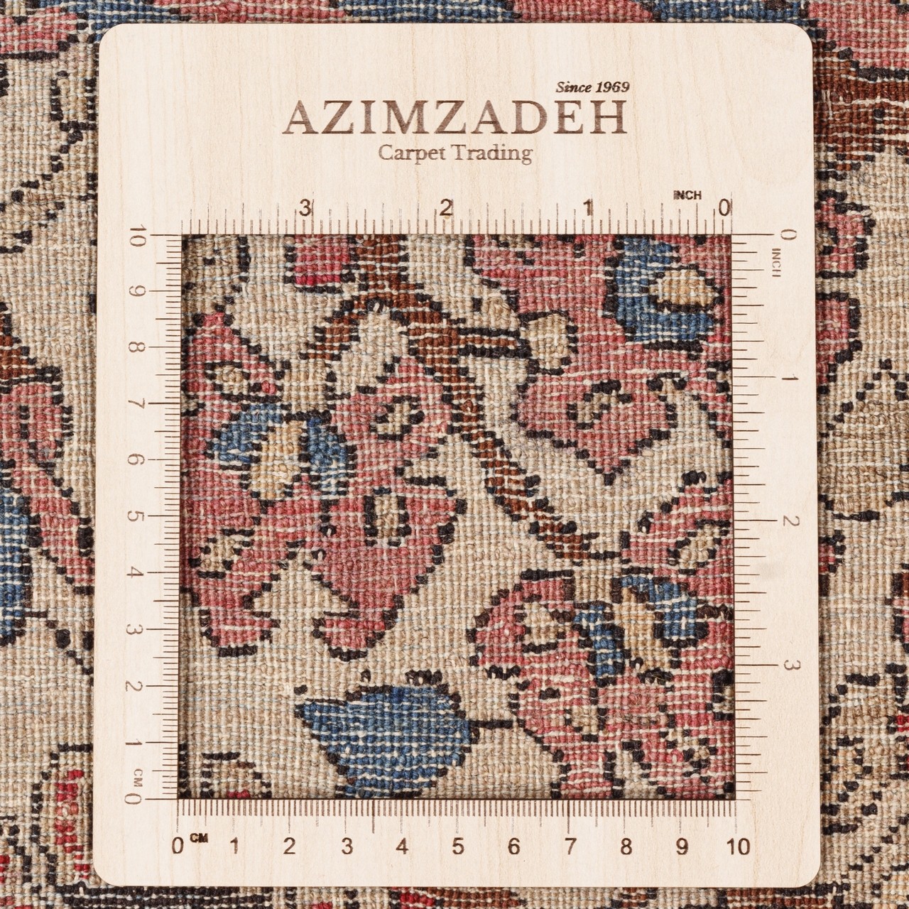 This antique handwoven rug with a mihrab design is a distinguished expression of the grandeur of Isfahan’s artistic heritage. A rectangular piece measuring 140 × 210 cm (4'7" × 6'11") with an area of approximately 2.94 m² (31.65 ft²), it narrates the interweaving of art, mysticism, and nature within the fabric of the Persian carpet. The mihrab composition of this work, balanced and harmonious in structure, evokes a sacred atmosphere, as though transforming the heart of the home into a sanctuary of serenity and reflection. Within this imaginative mihrab, floral motifs are arranged with artistic refinement—flowers in warm, authentic hues blossoming like branches from Persian gardens of imagination across a cream-colored field, framed by a madder-red border that imparts solidity and visual weight. The wool yarn used for the weft, combined with a cotton warp, represents a deliberate choice to achieve durability, softness, and structural stability. With a weaving density of about 4,100 knots/dm², the rug reflects a moderate fineness that balances precision with traditional texture, placing this work among the authentic and well-crafted rugs of Isfahan.