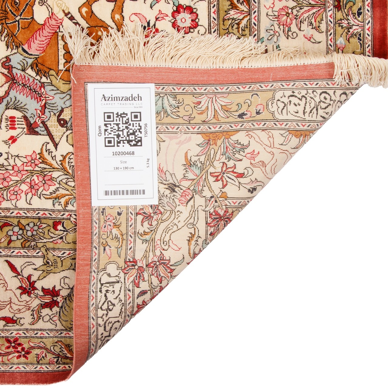 فرش دستباف طرح سراسر تمام ابریشم قم 130 × 190 کد 10200468