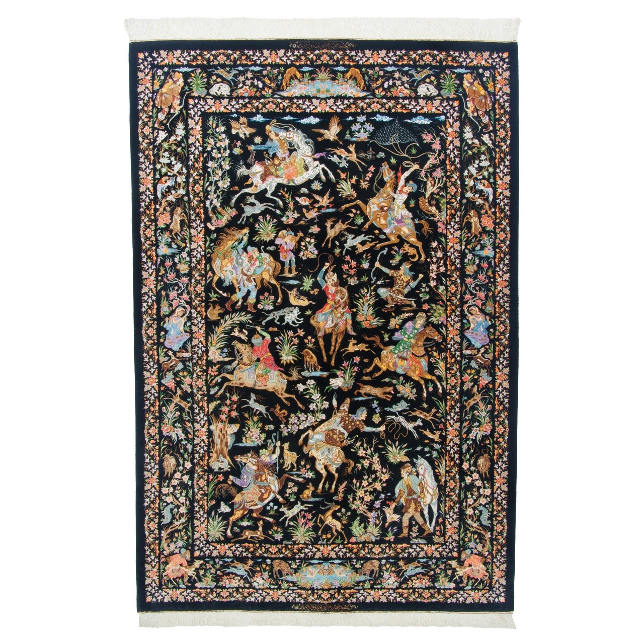 فرش دستباف طرح سراسر تمام ابریشم قم 144 × 208 کد 10300425