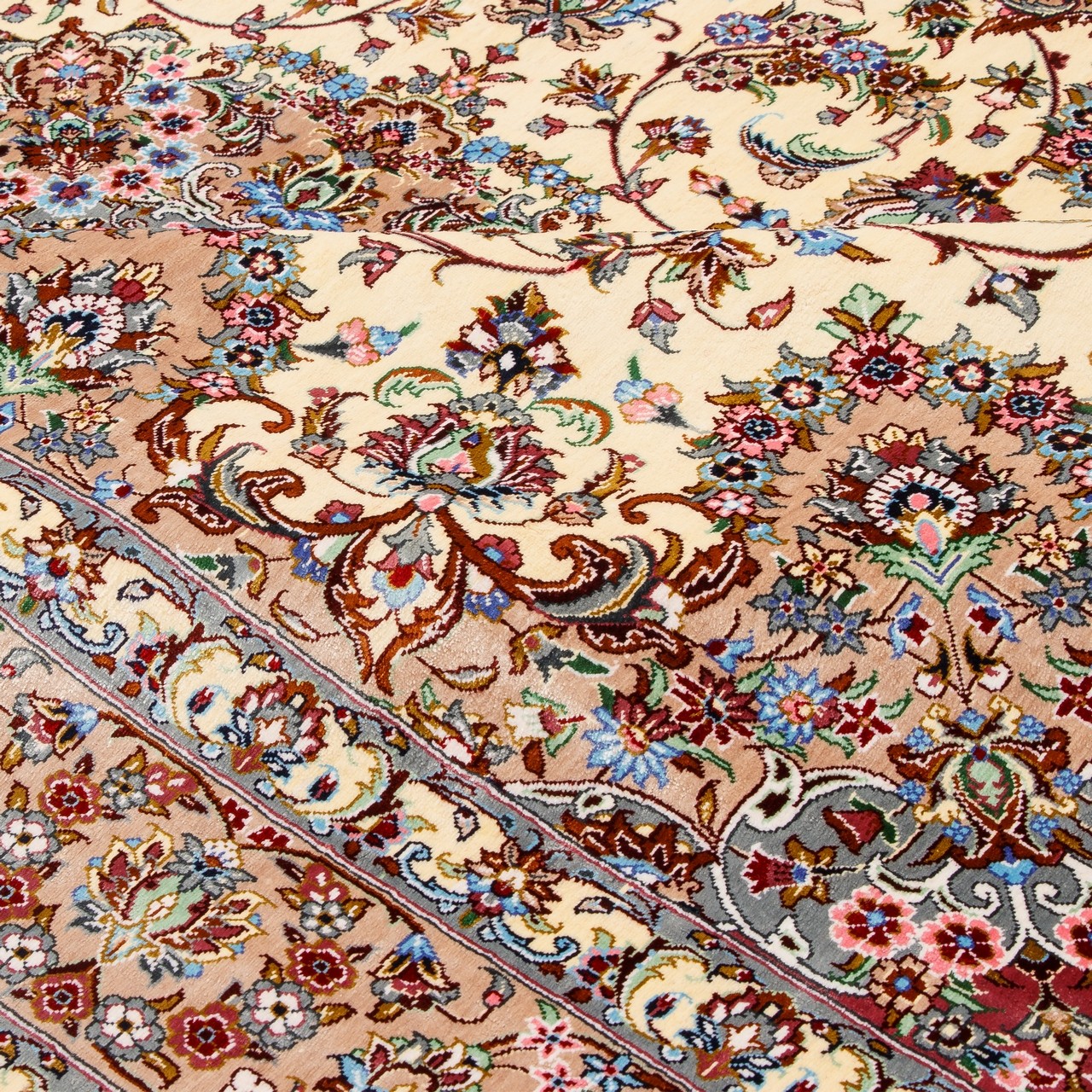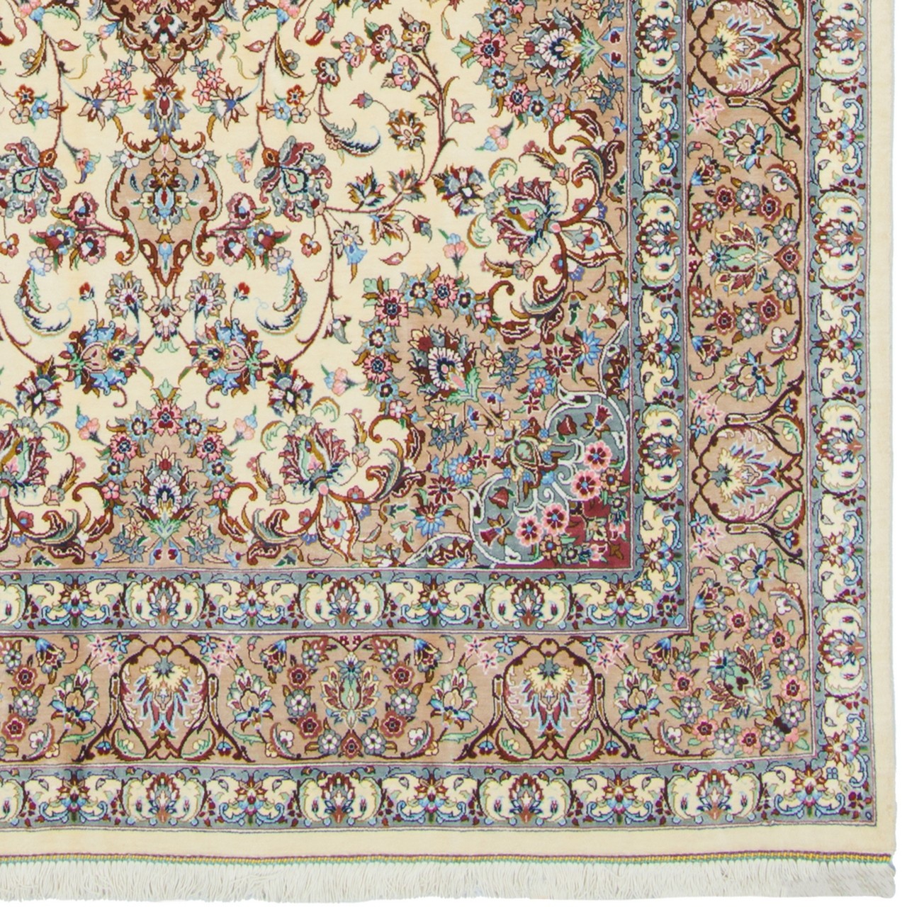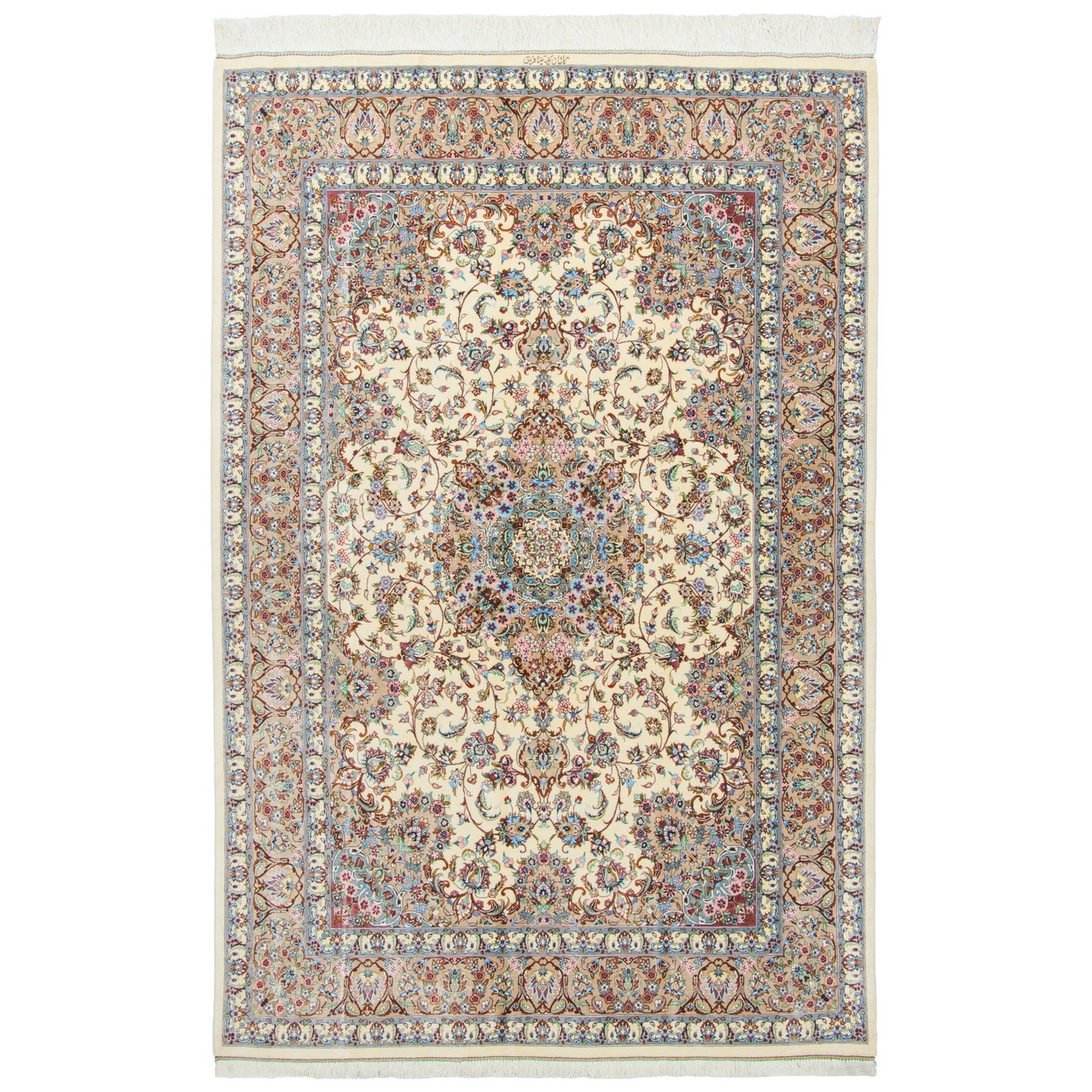 Handwoven Carpet, Corner Medallion Layout, All Silk, Kashan, 133 × 198 cm Ref 10200492