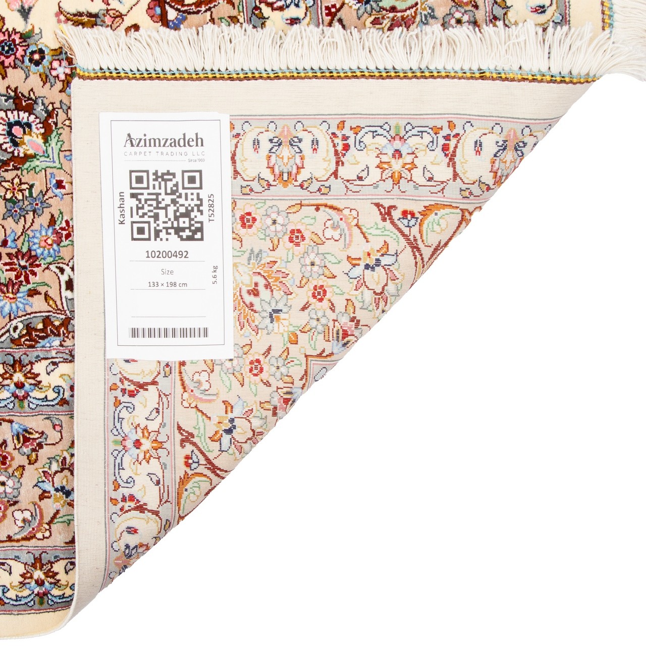 فرش دستباف طرح لچک ترنج تمام ابریشم کاشان 133 × 198 کد 10200492