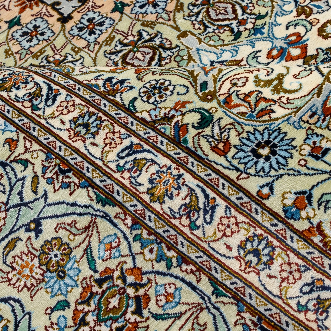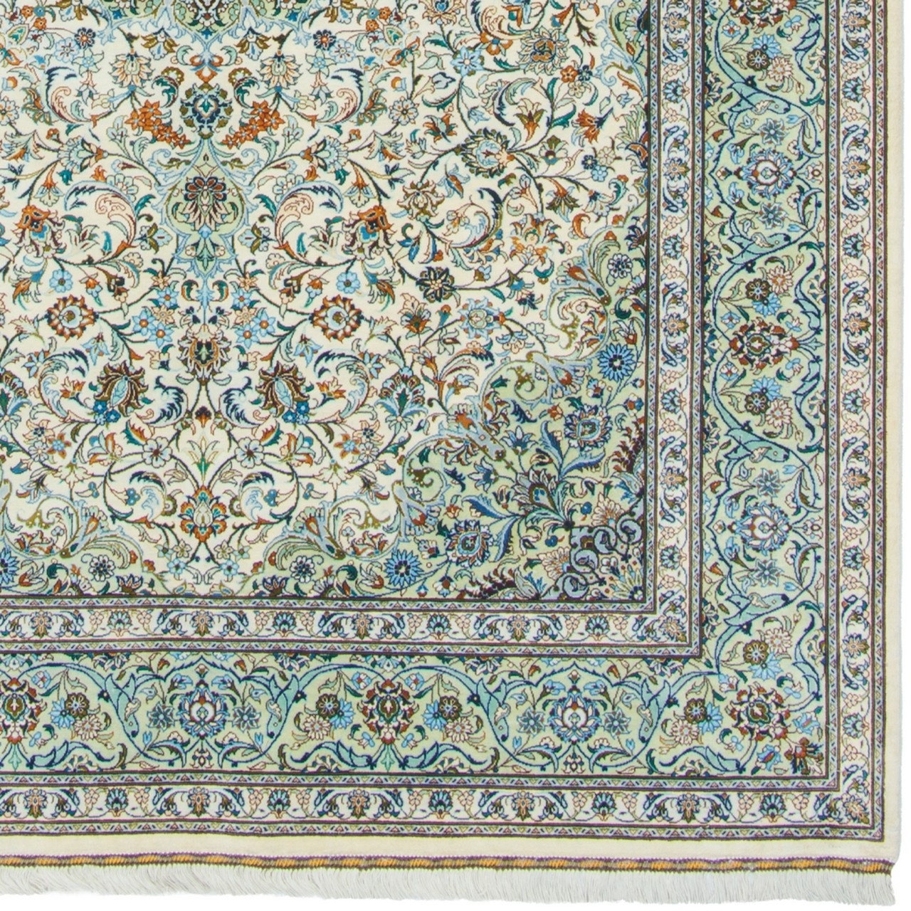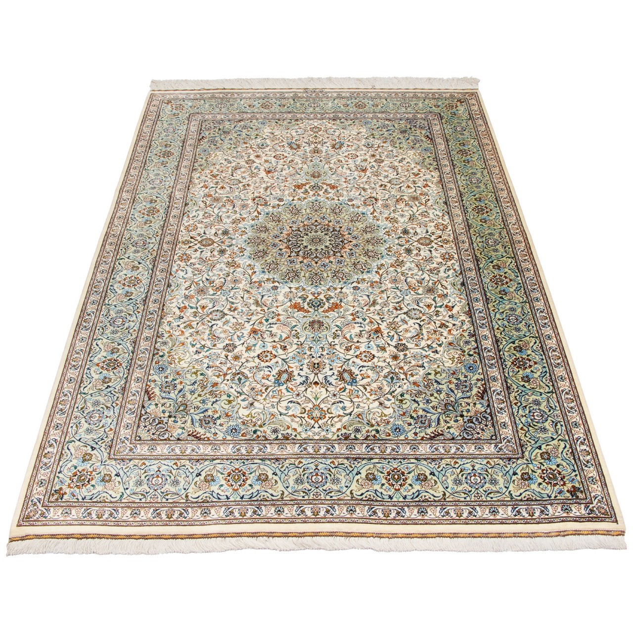 Handwoven Carpet, Corner Medallion Layout, All Silk, Kashan, 135 × 200 cm Ref 10200479