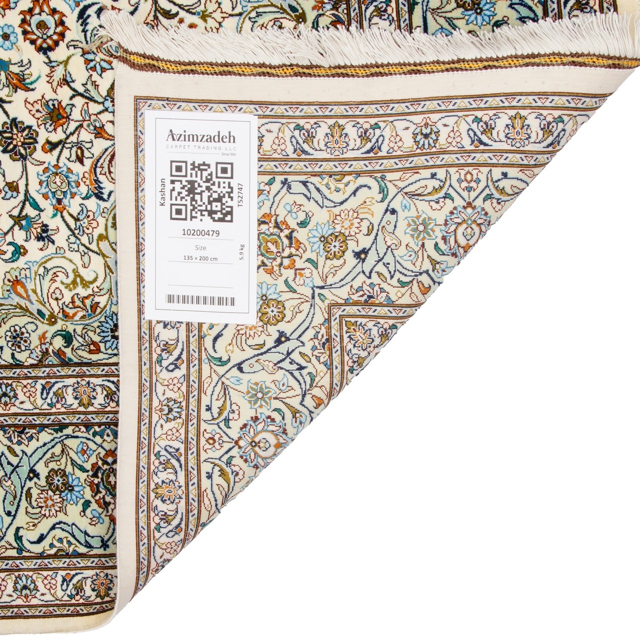 فرش دستباف طرح لچک ترنج تمام ابریشم کاشان 135 × 200 کد 10200479