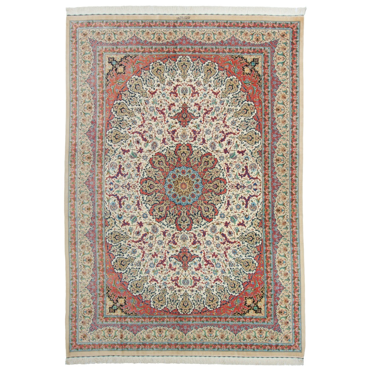 Handwoven Carpet, Corner Medallion Layout, All Silk, Kashan, 250 × 350 cm Ref 10800825