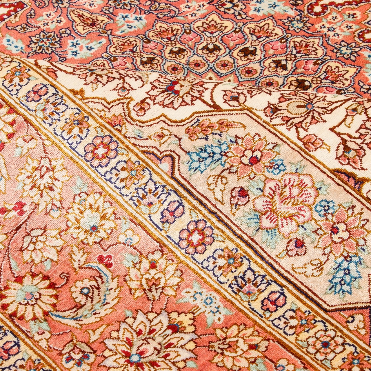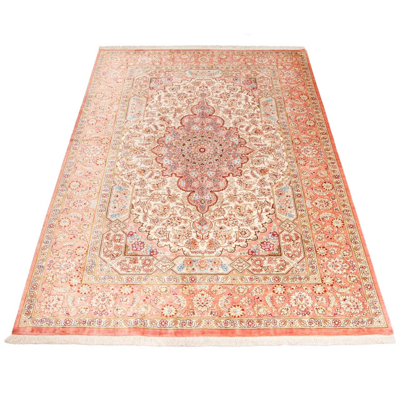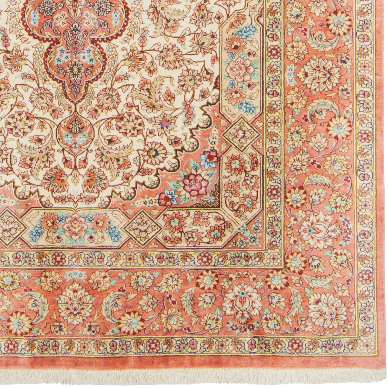 Handwoven Carpet, Corner Medallion Layout, All Silk, Qom, 125 × 194 cm Ref 10200488