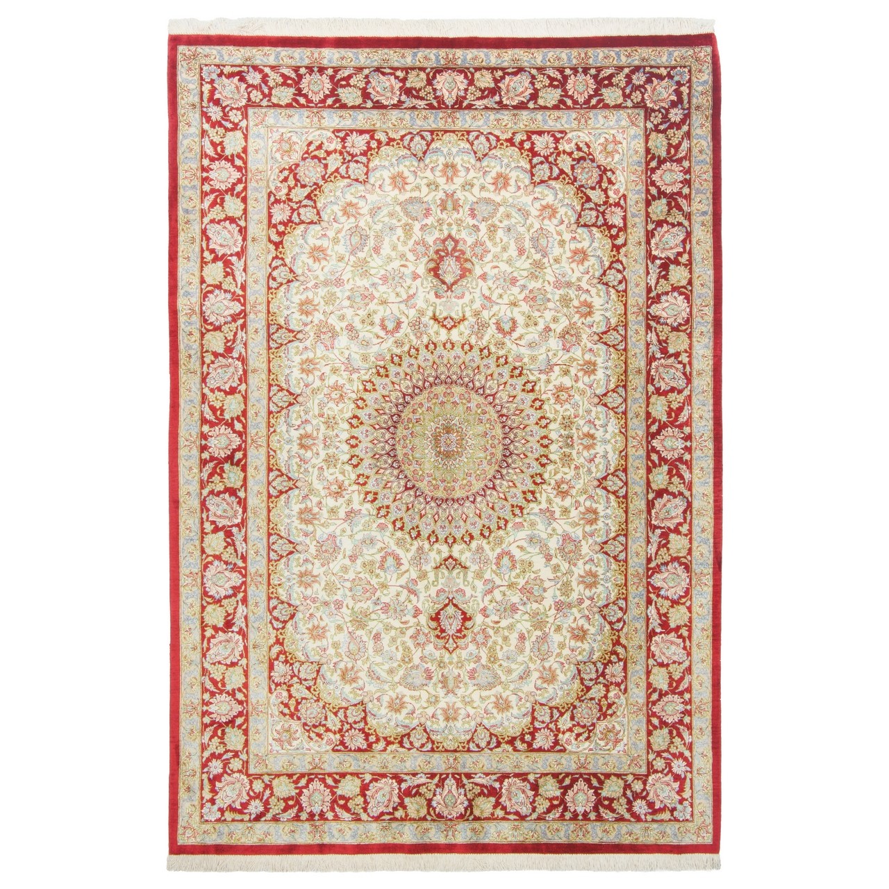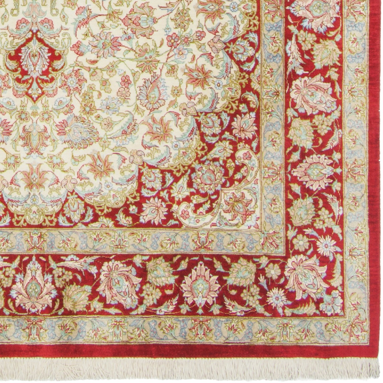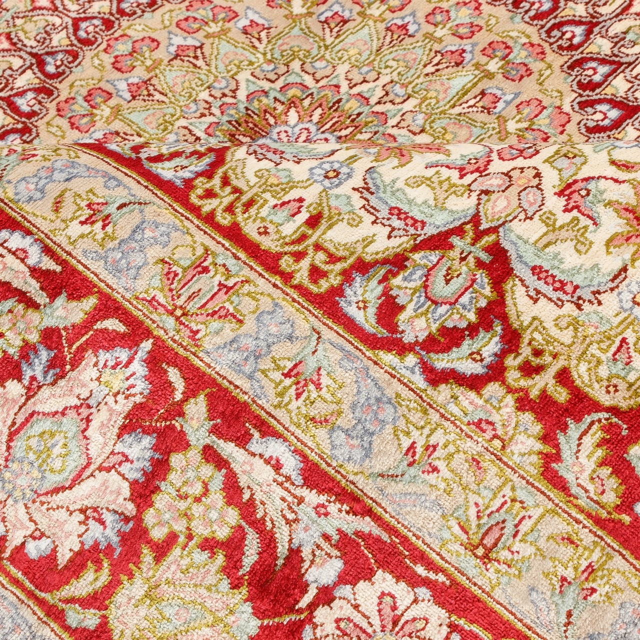 Handwoven Carpet, Corner Medallion Layout, All Silk, Qom, 132 × 195 cm Ref 10200478
