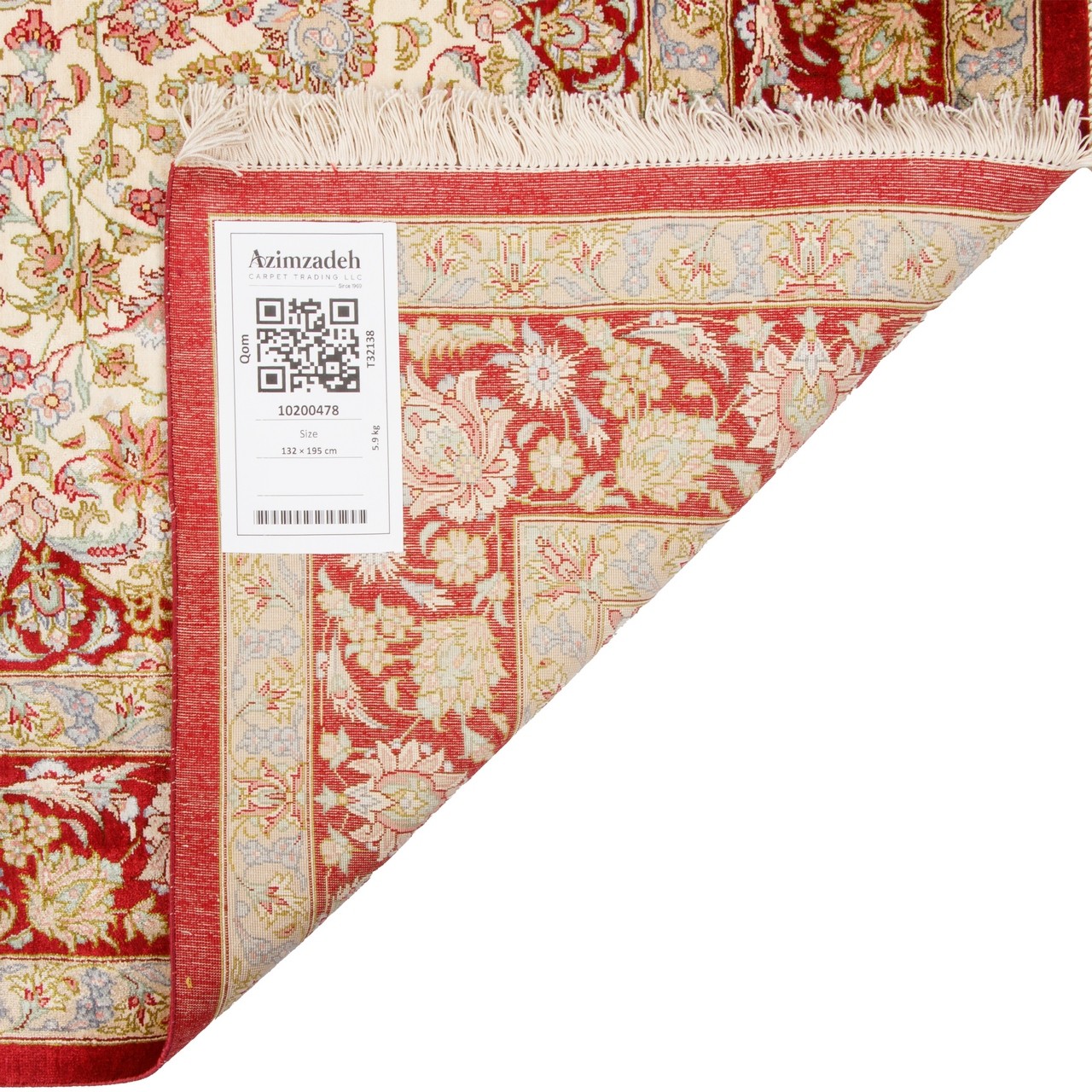 فرش دستباف طرح لچک ترنج تمام ابریشم قم 132 × 195 کد 10200478