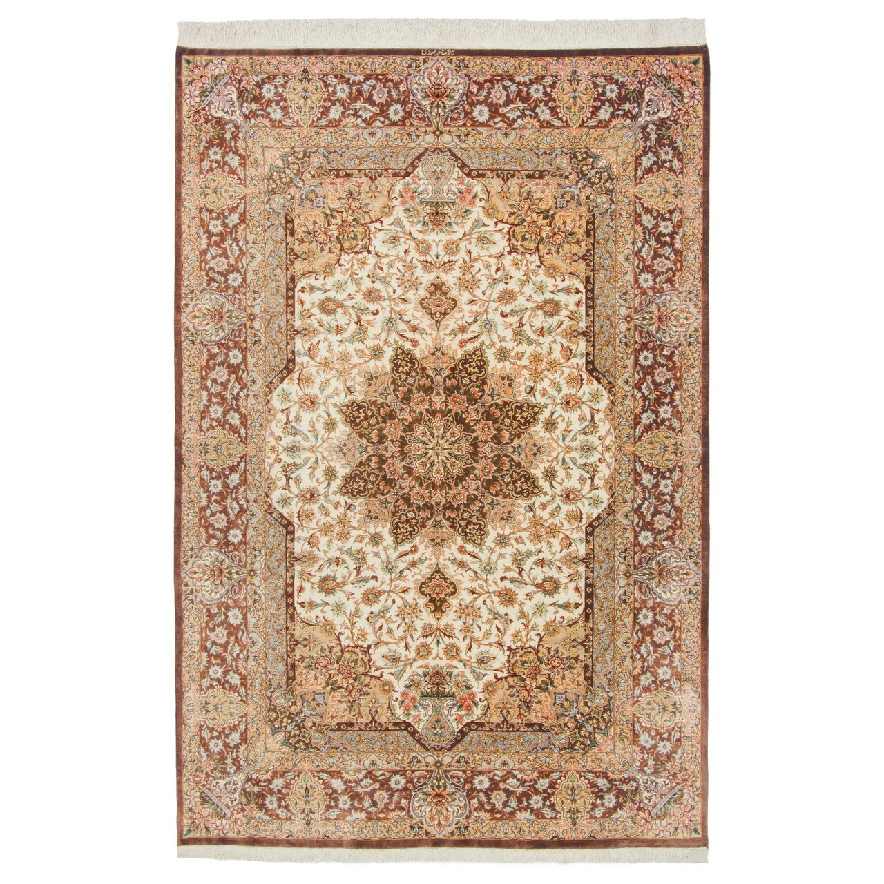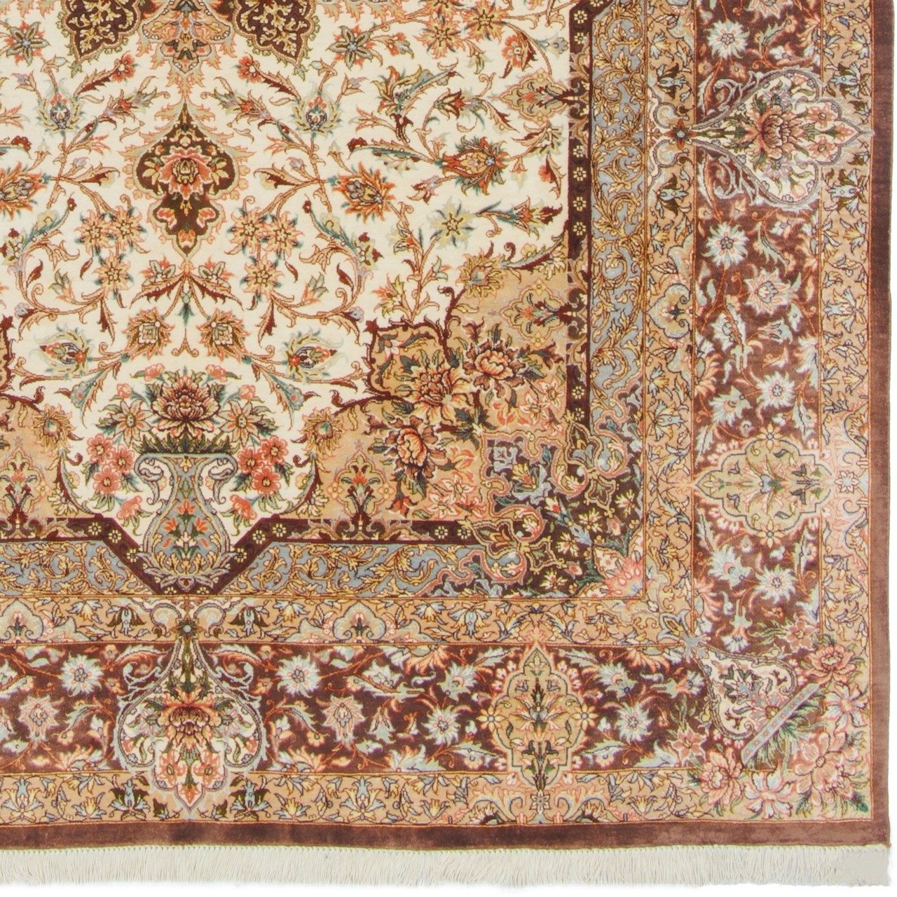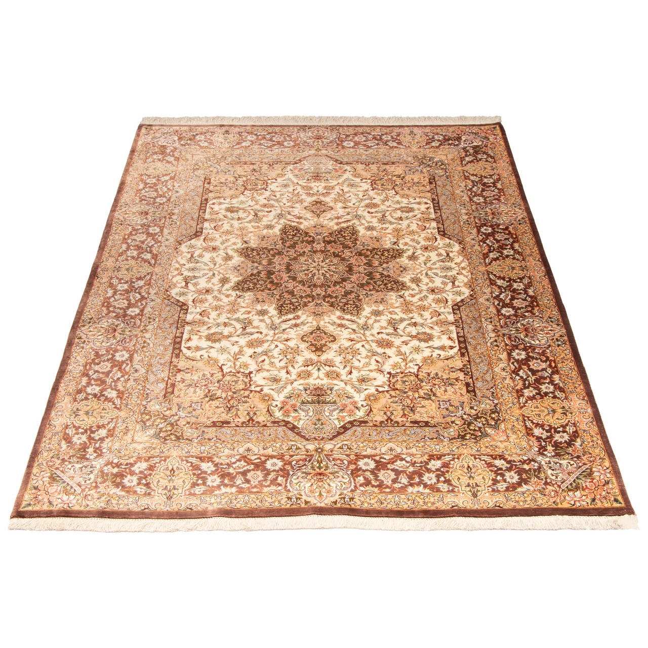 Handwoven Carpet, Corner Medallion Layout, All Silk, Qom, 132 × 200 cm Ref 10200463