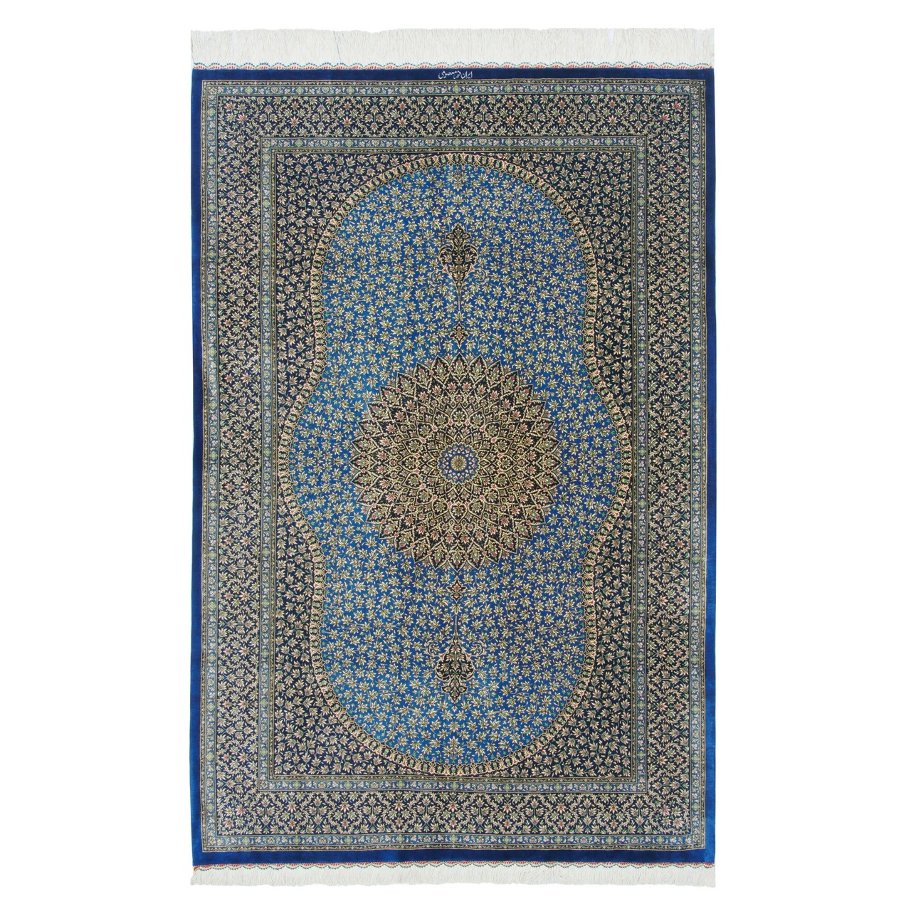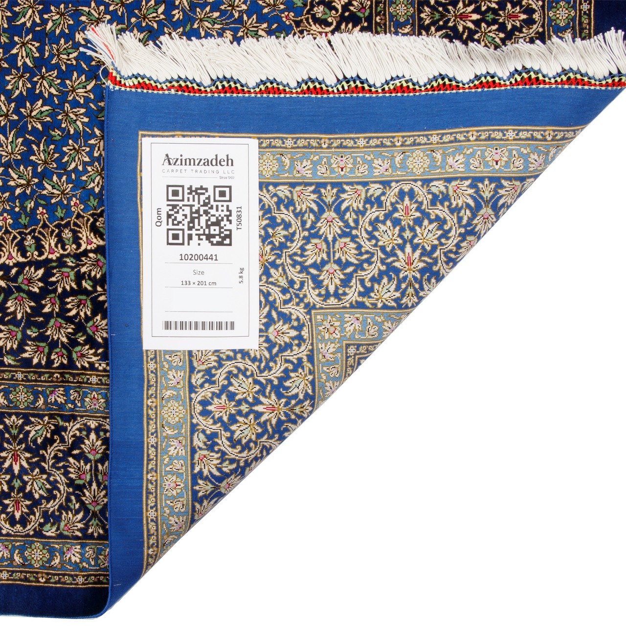 Handwoven Carpet, Corner Medallion Layout, All Silk, Qom, 133 × 201 cm Ref 10200441