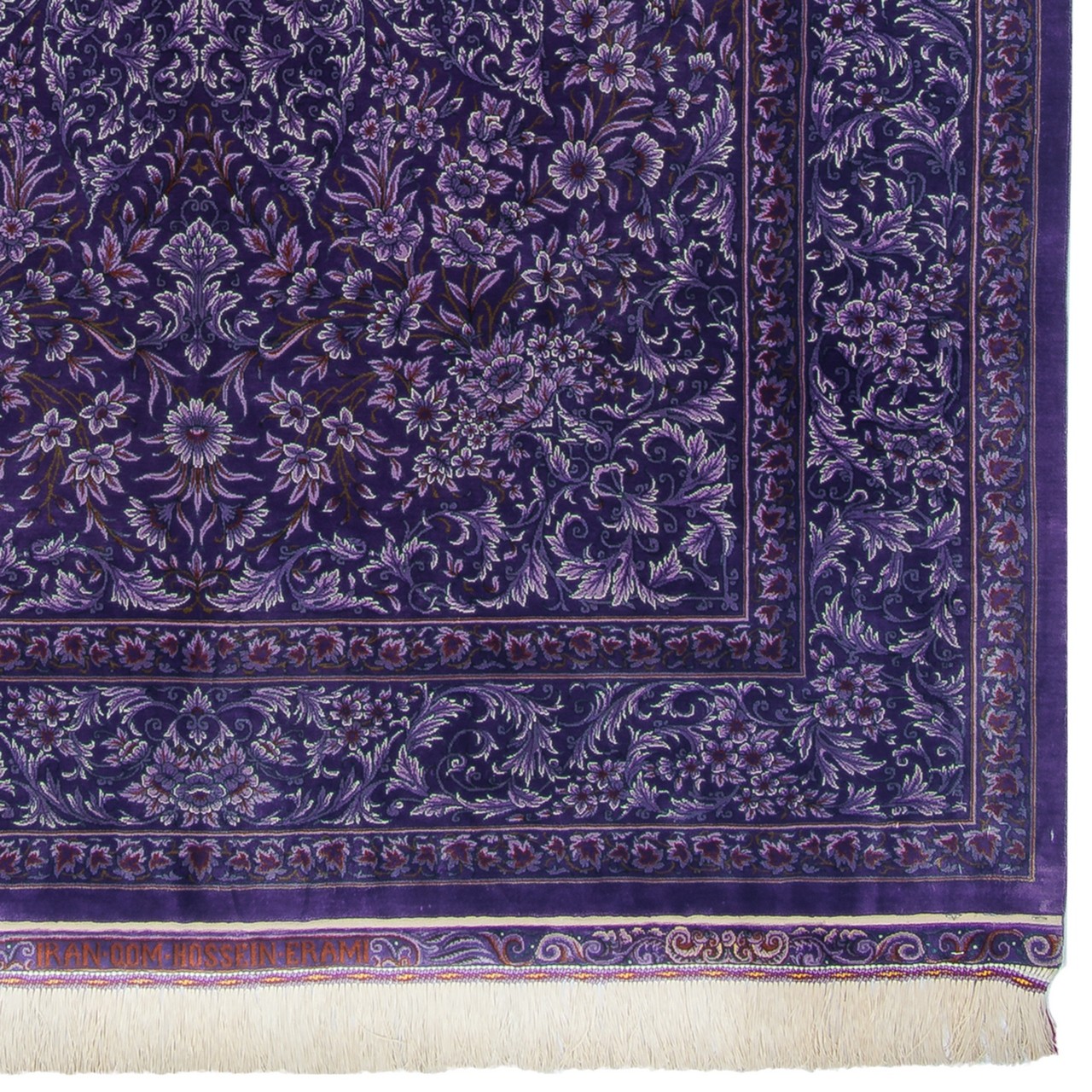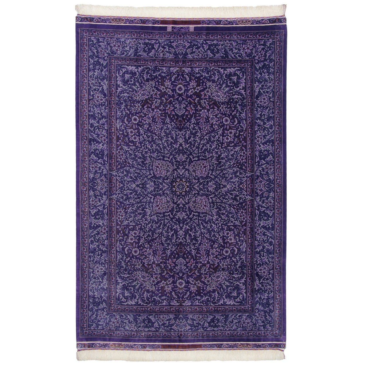 Handwoven Carpet, Corner Medallion Layout, All Silk, Qom, 133 × 205 cm Ref 10200403