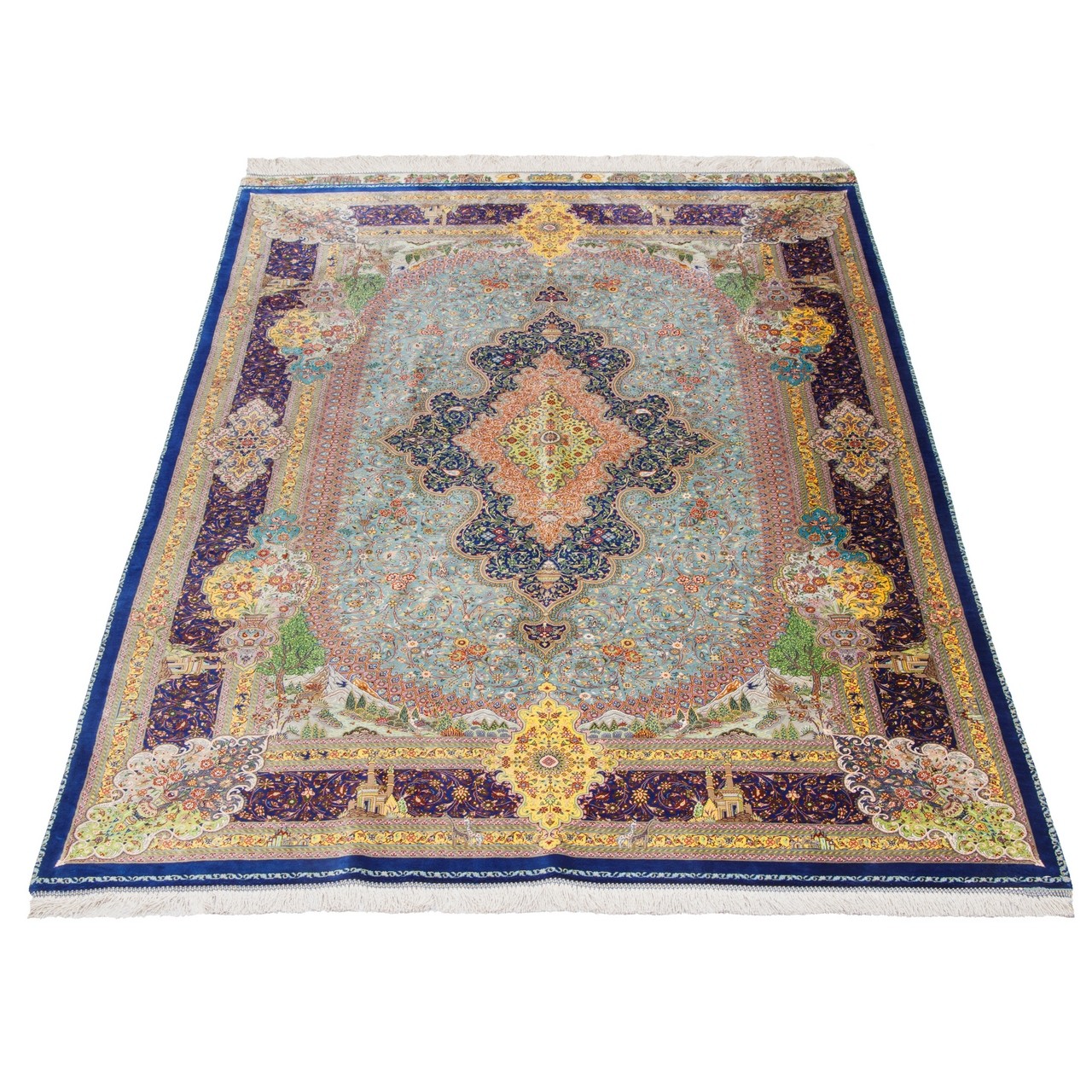 Handwoven Carpet, Corner Medallion Layout, All Silk, Qom, 135 × 204 cm Ref 10200454